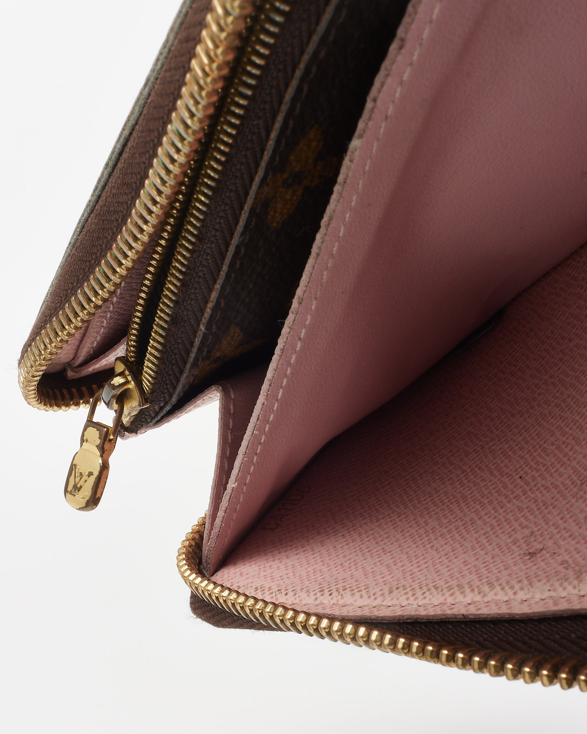 Elevate your everyday essentials with this authentic pre-owned Louis Vuitton Clémence Zippy Wallet in monogram coated canvas with pink details. Its streamlined silhouette fits effortlessly into your bag while offering ample room for your cards, cash, and coins. Inside, the wallet features sleek compartments and a secure zip-around closure, making it as functional as it is fashionable. Perfect for jet-setters and city-chic enthusiasts alike, the Clémence Zippy Wallet is more than an accessory—it’s a style statement.