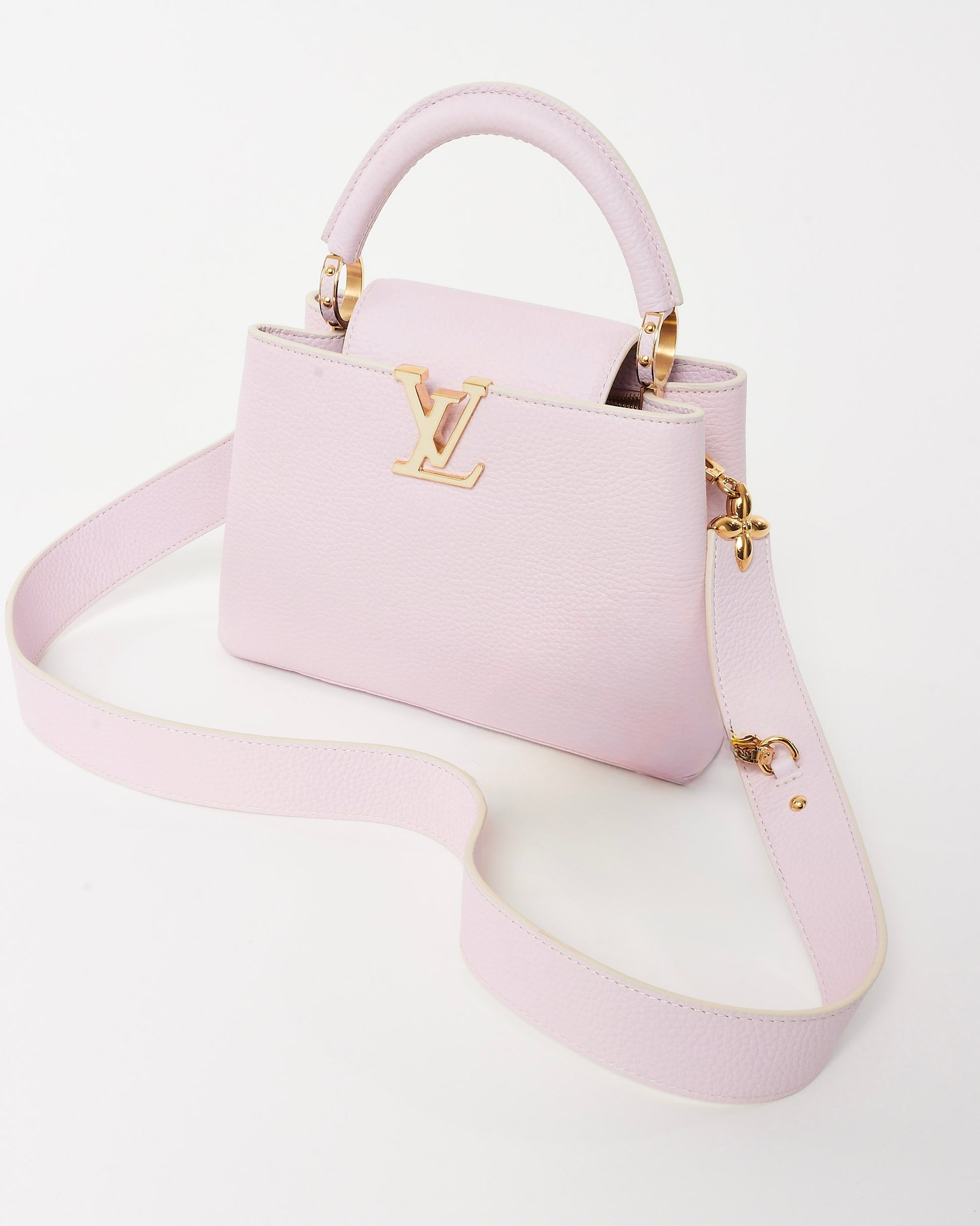 Delicate yet bold, this pre-loved authentic Louis Vuitton Capucines BB in blush pink Taurillon leather is the epitome of Parisian refinement. Crafted with impeccable attention to detail, it features the iconic monogram flower hook strap and structured silhouette—striking the perfect balance between femininity and sophistication.