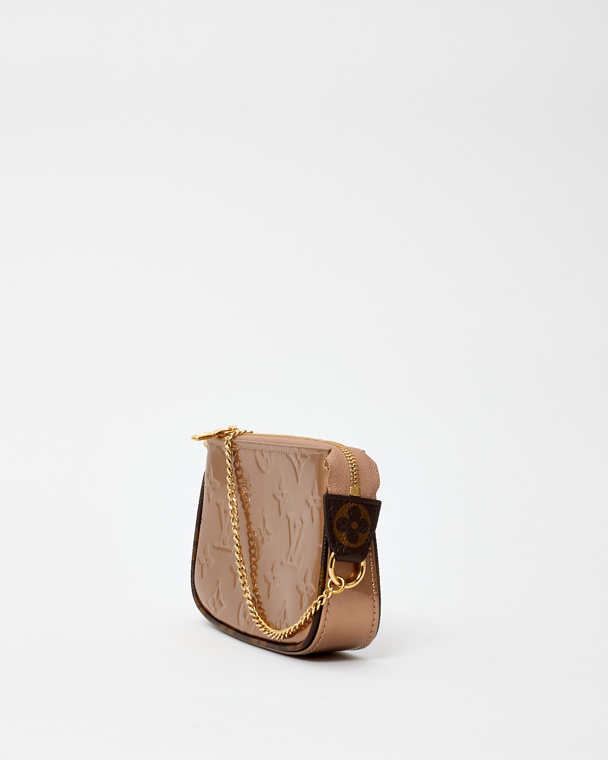 Explore Louis Vuitton's exquisite collection of handbags, featuring this certified pre-owned Rose Gold Vernis Mini Pochette D'Accessoires. Embodying timeless elegance and modern sustainability, each piece, including favorites like this, is authenticated by Retyche. Discover sustainable luxury — shop our current treasures or find inspiration for your next coveted find.
