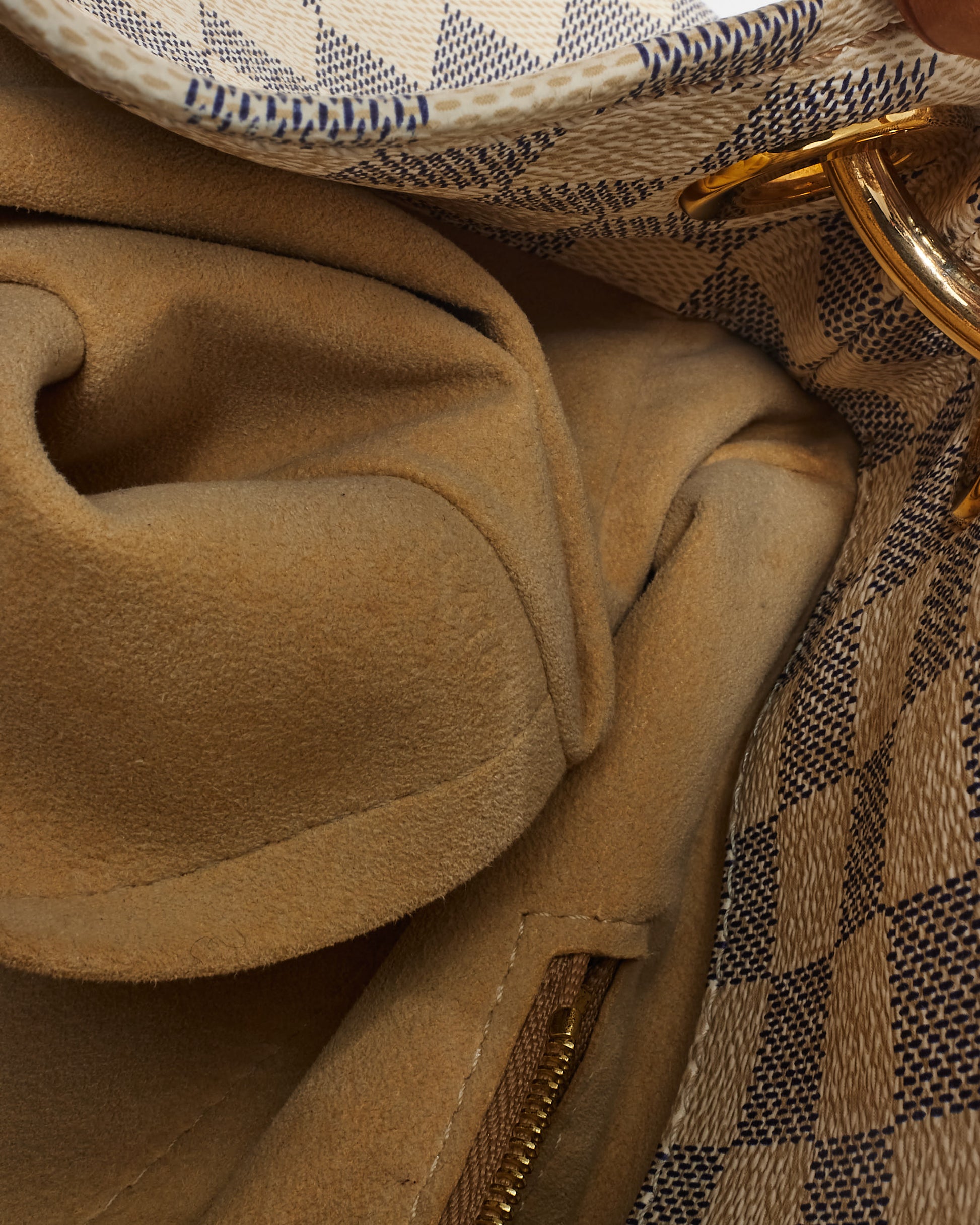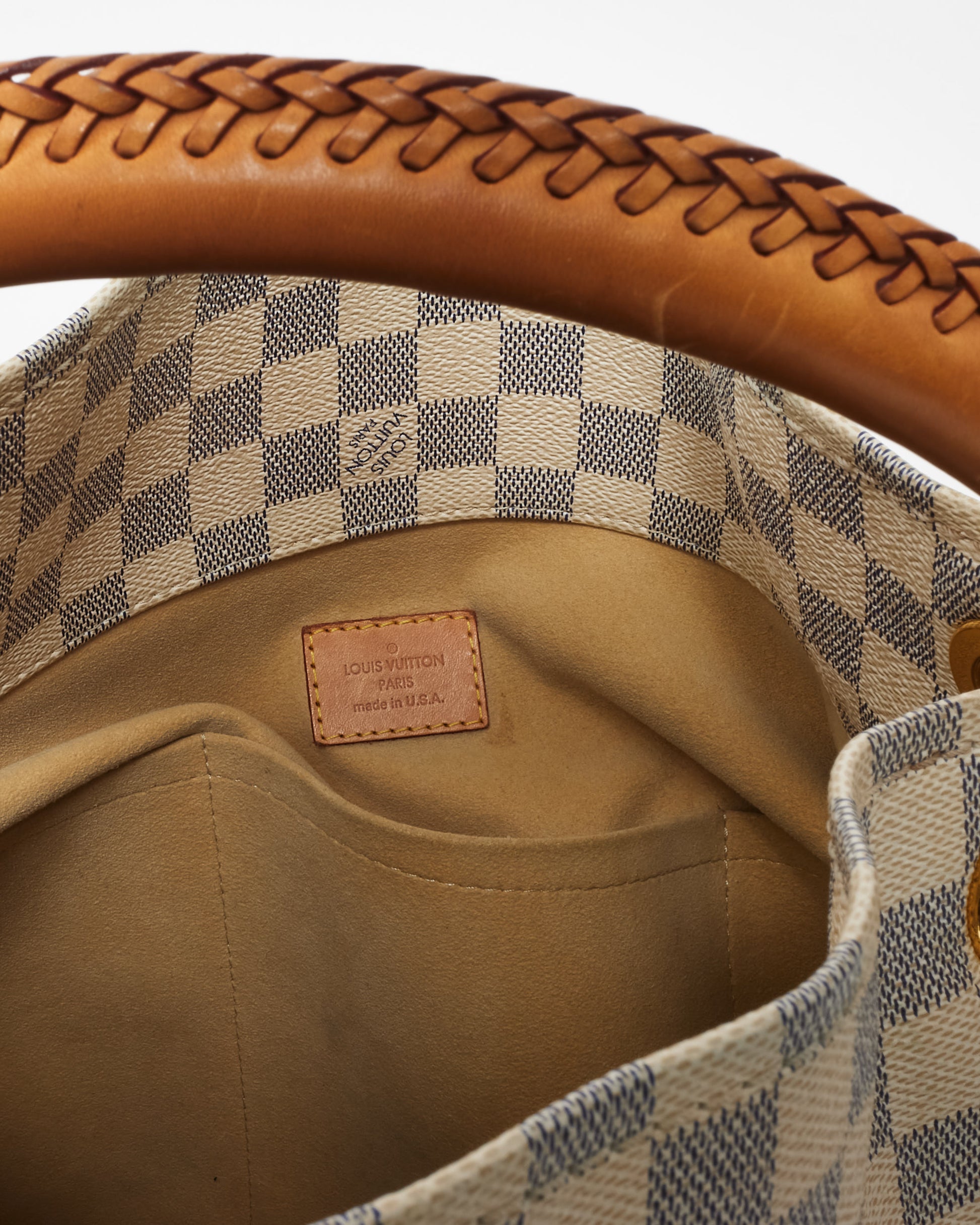 A perfect blend of elegance and practicality, the authentic pre-owned Louis Vuitton White Damier Azur Coated Canvas Artsy MM Shoulder Bag is a sophisticated statement piece. Crafted from Louis Vuitton’s signature Damier Azur coated canvas, this bag features natural Vachetta leather trim that develops a rich patina over time.