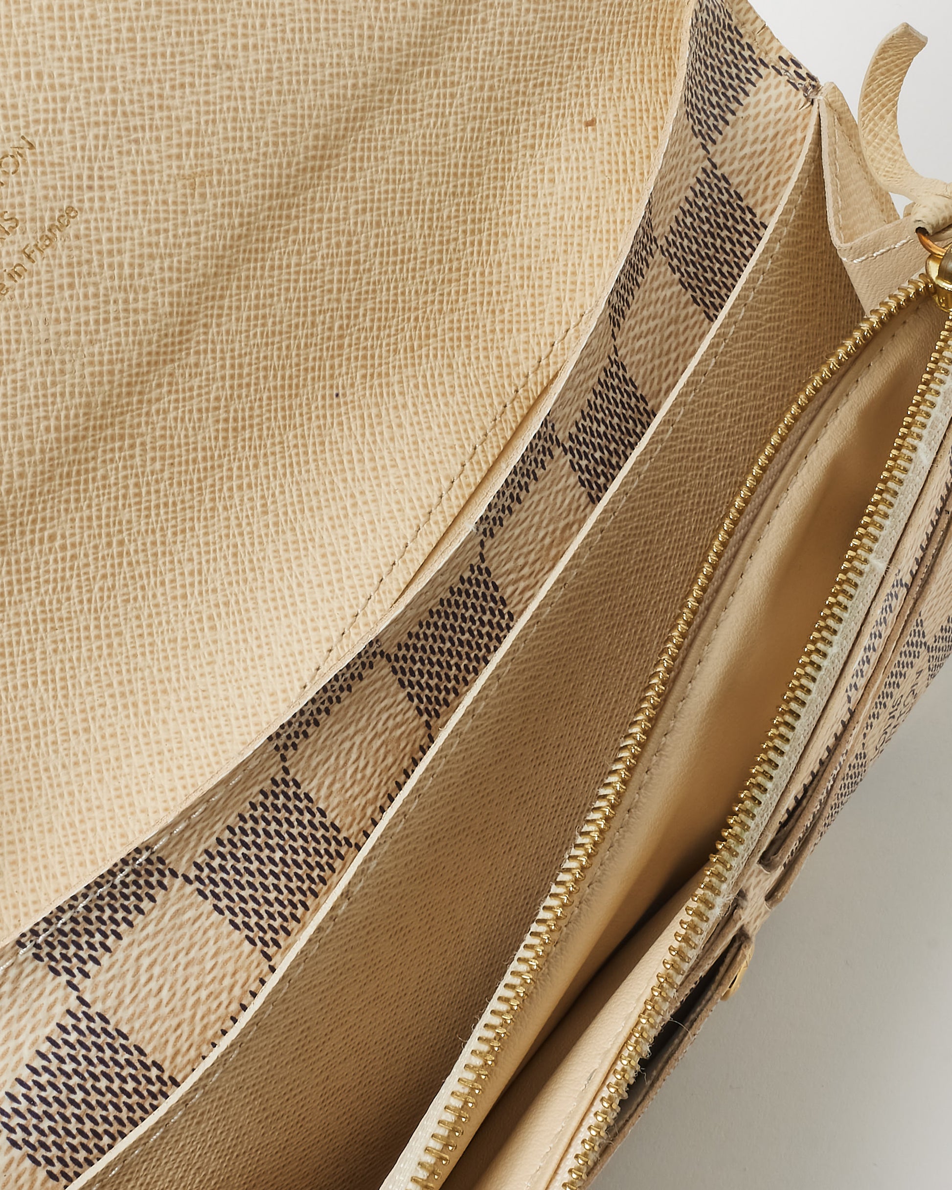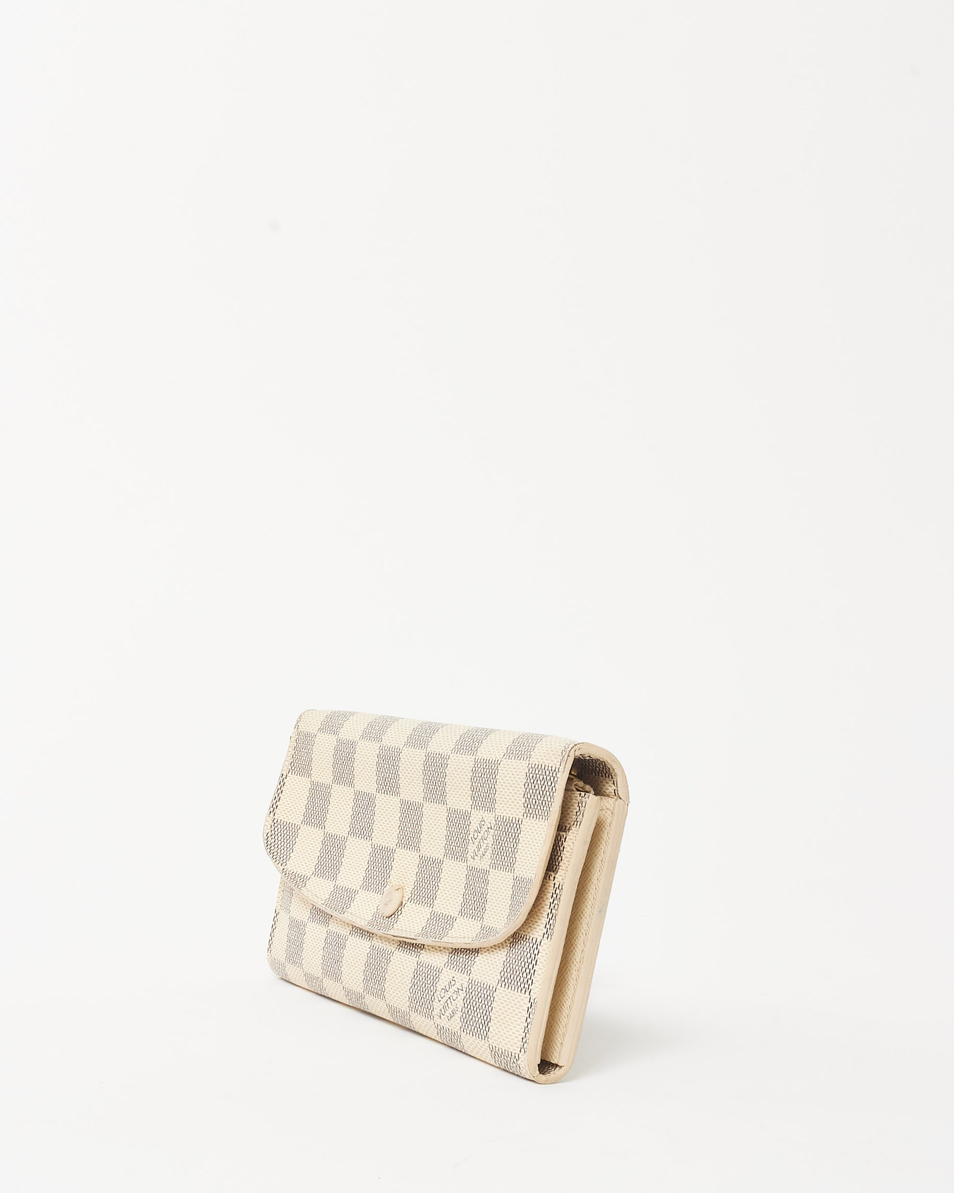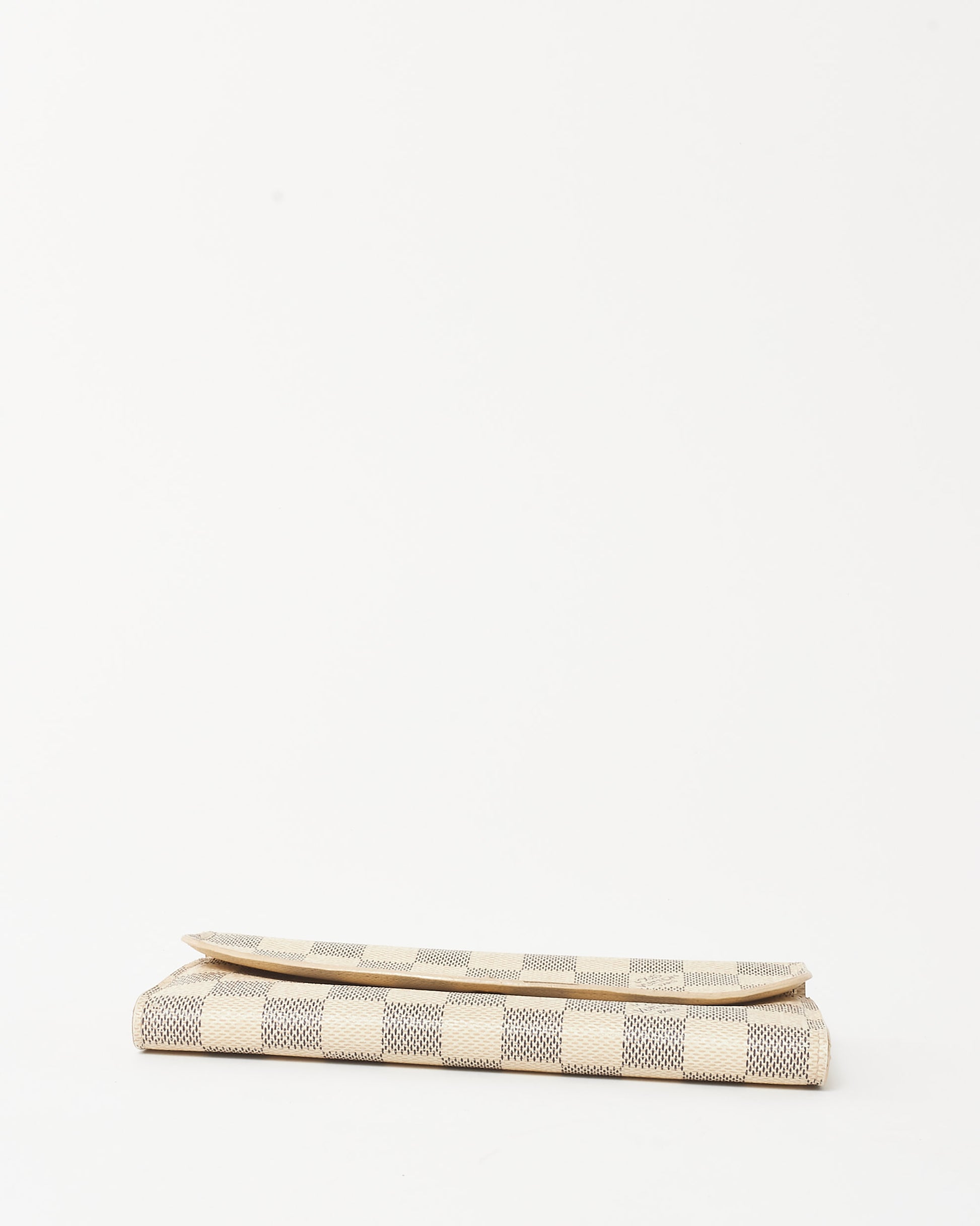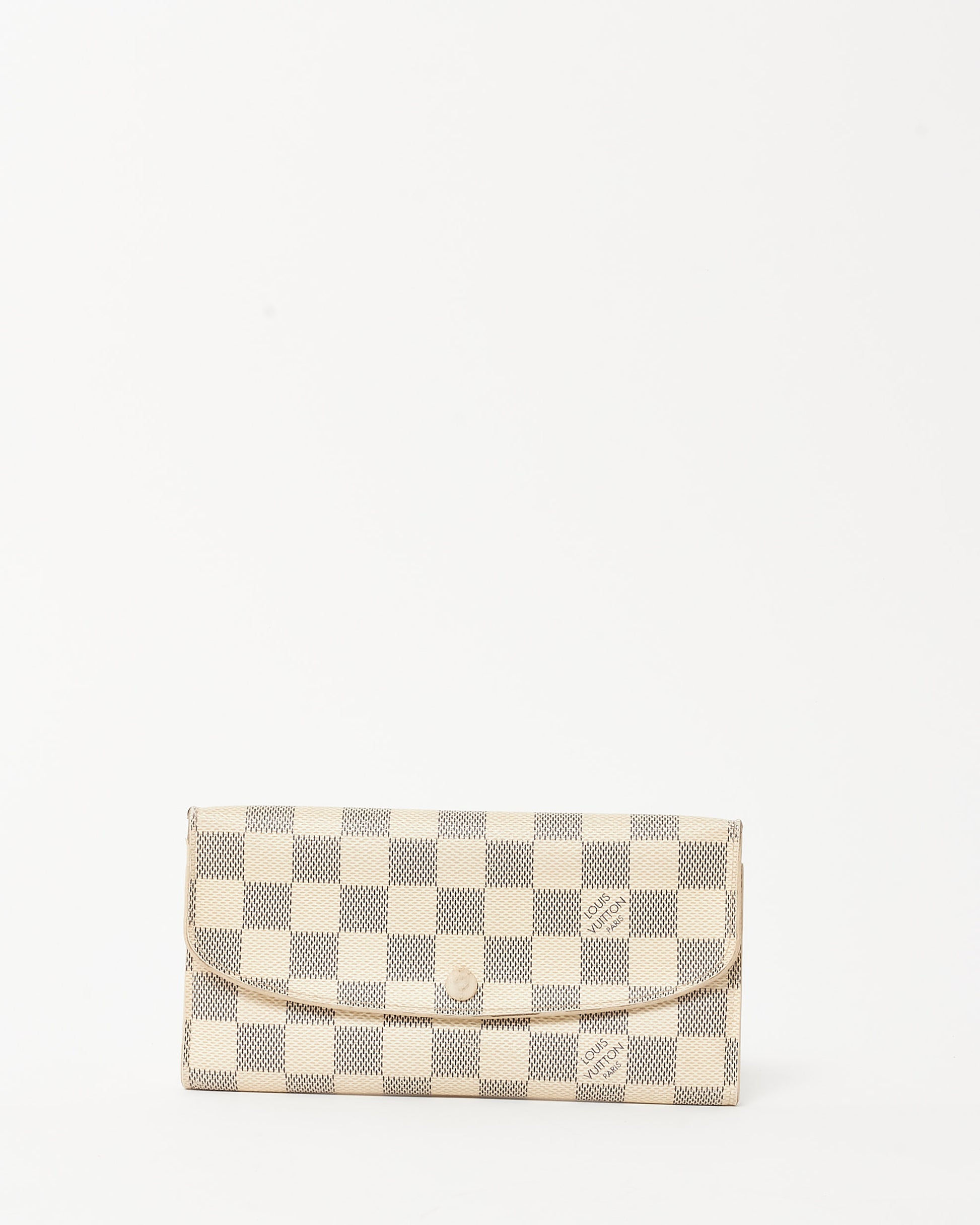 Light, feminine, and effortlessly chic, this pre-loved authentic Louis Vuitton Emilie Wallet is crafted from the elegant Damier Azur coated canvas with natural cowhide leather trim. The envelope-style silhouette features a soft rounded flap, snap closure, and a thoughtfully designed interior with card slots, a zip coin pocket, and space for daily essentials.