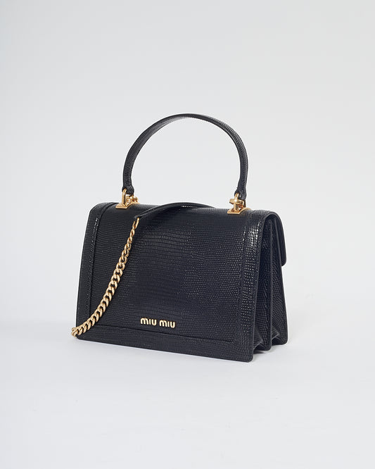 Black Embossed Lizard Leather Top Handle Padlock Bag