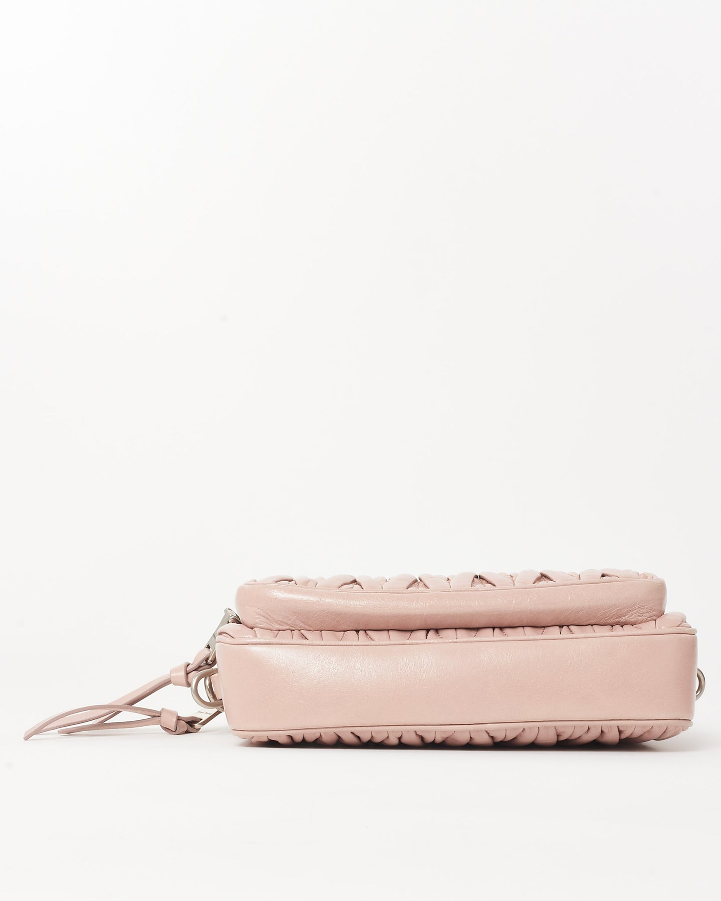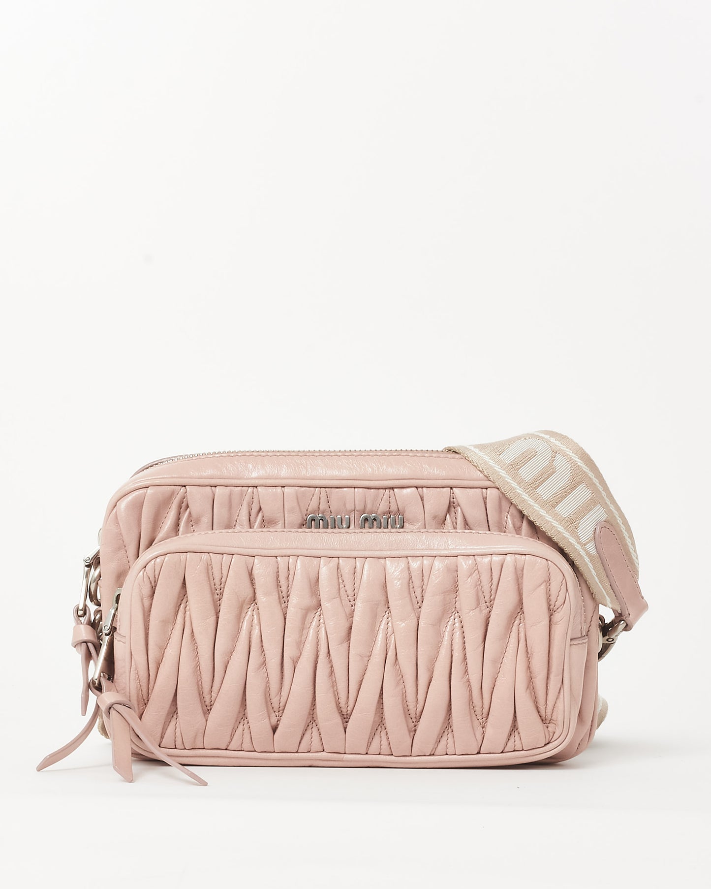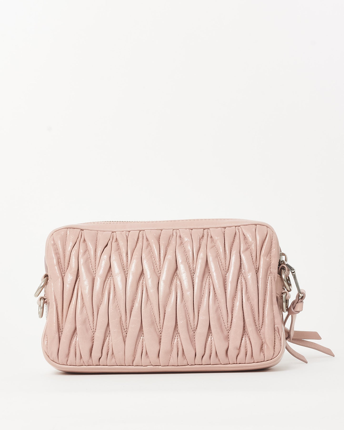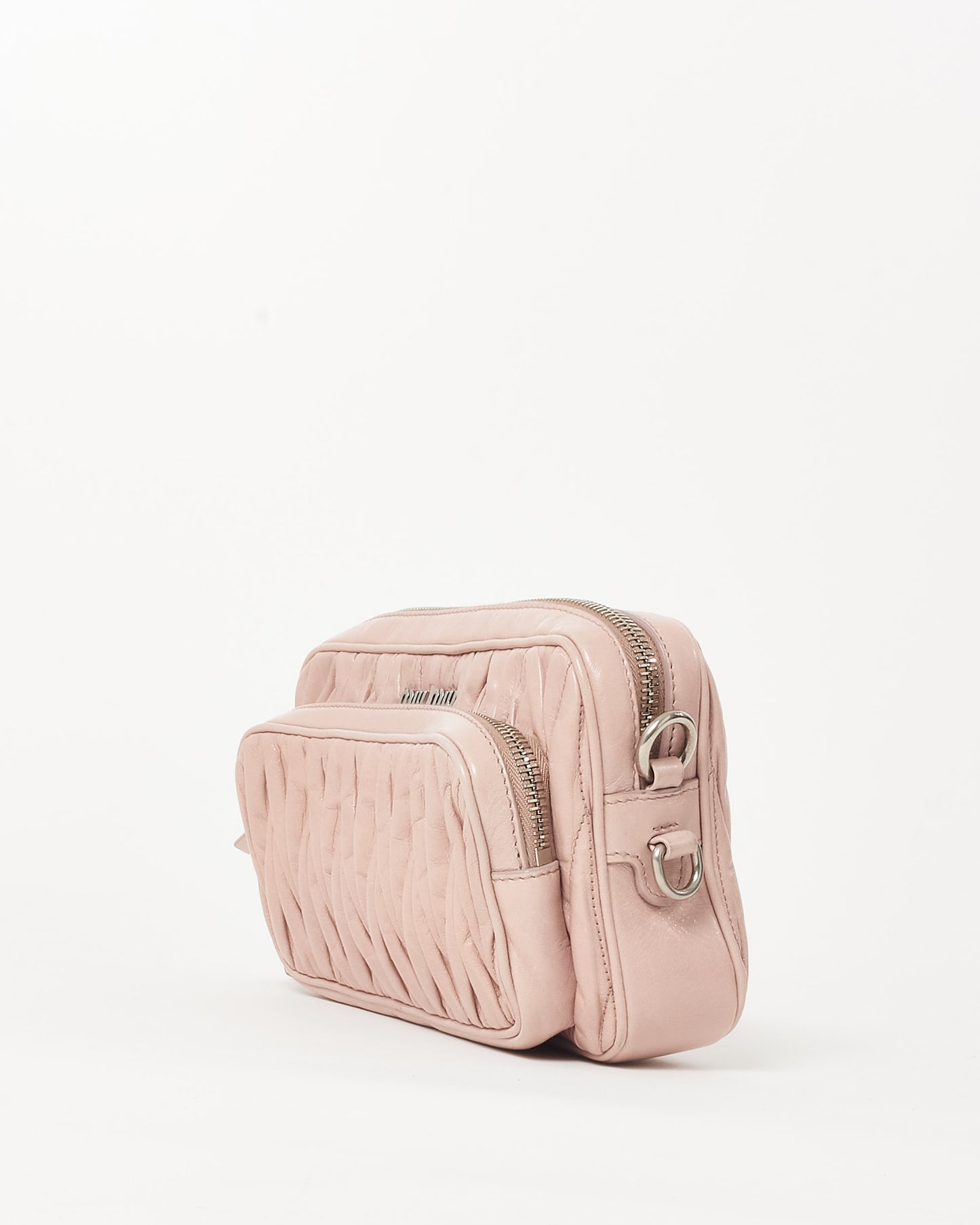 Pink Matelassé Leather Square Pocket Bandoliera Crossbody Bag