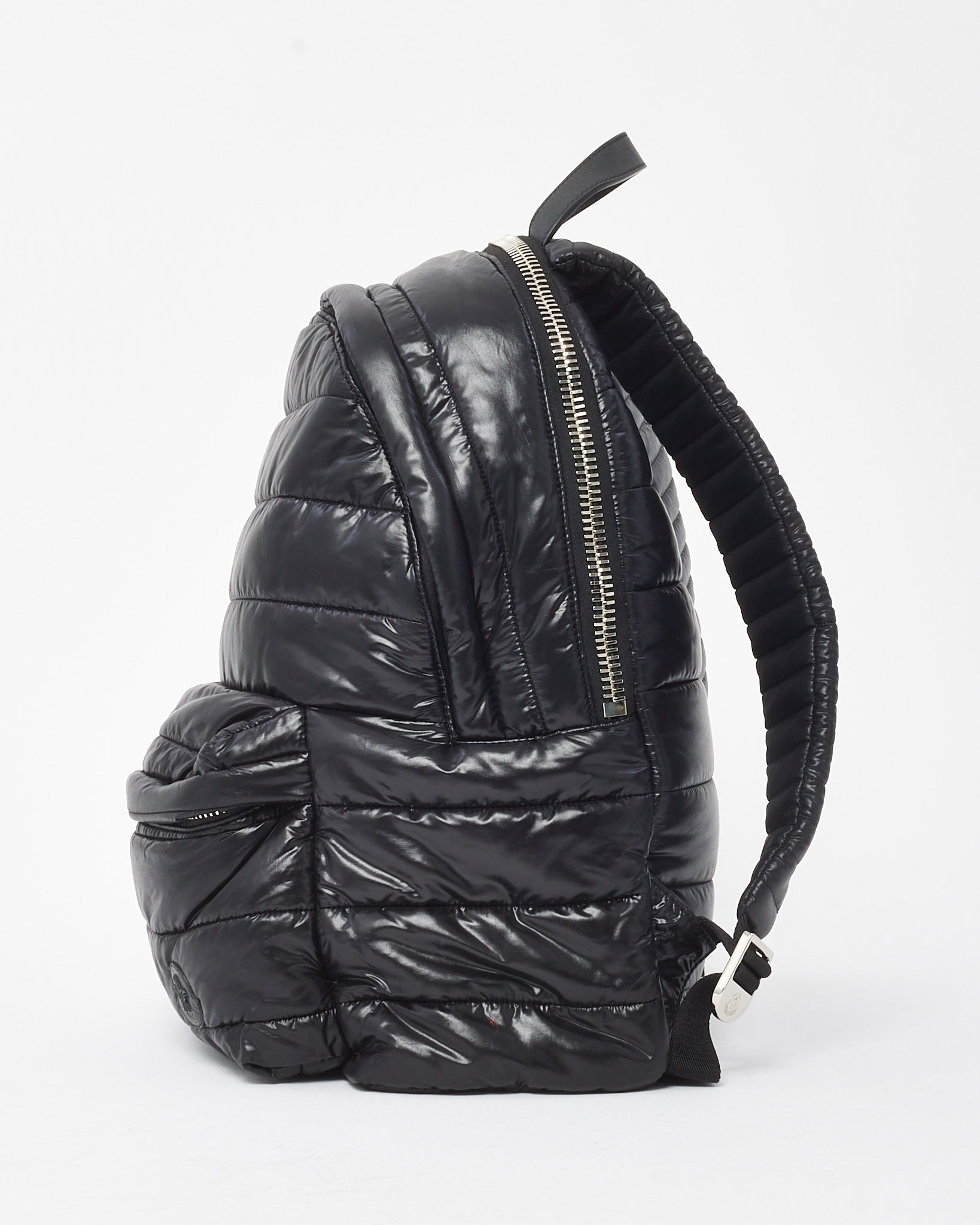 Add refined function to your daily carry with this pre-loved authentic Moncler Black Nylon Puffer New George Zaino Backpack. Crafted from sleek black nylon in Moncler’s signature puffer quilting, this modern backpack features a tonal iconic logo patch on the front zip pocket. Its structured silhouette offers a roomy main compartment, exterior zip pocket, and adjustable padded straps for all-day comfort. Lightweight yet resilient, it’s the perfect blend of alpine performance and urban sophistication, ideal for both travel and everyday use.