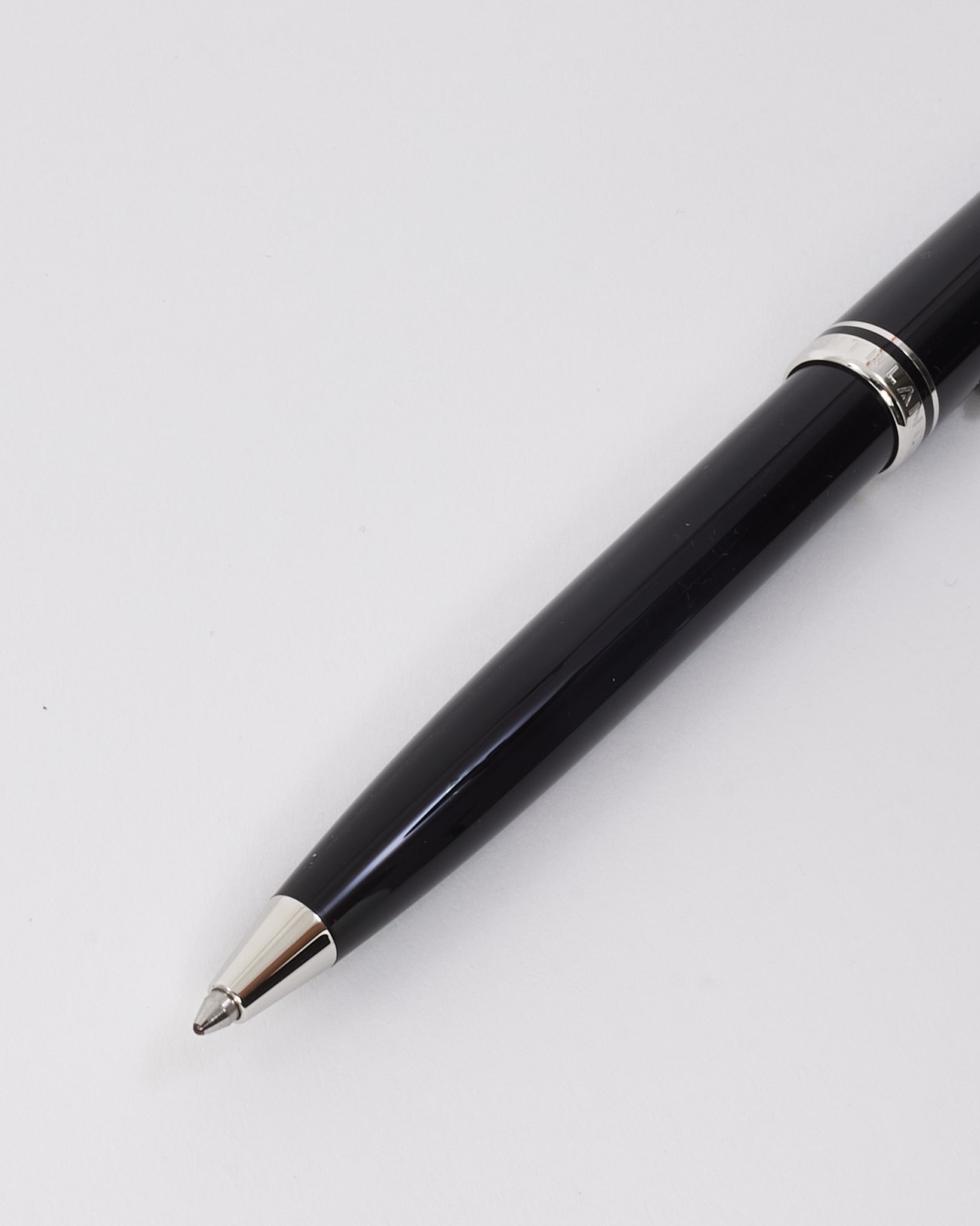 Add refined simplicity to your writing essentials with this pre-loved authentic Montblanc PIX Black Ballpoint Pen. Inspired by the Bauhaus design movement, this sleek pen features a smooth black precious resin barrel accented with platinum-coated details and the iconic Montblanc white star emblem at the cap. Lightweight and balanced for everyday use, it delivers clean, consistent writing with understated elegance. A minimalist yet luxurious accessory, perfect for professionals and collectors alike.