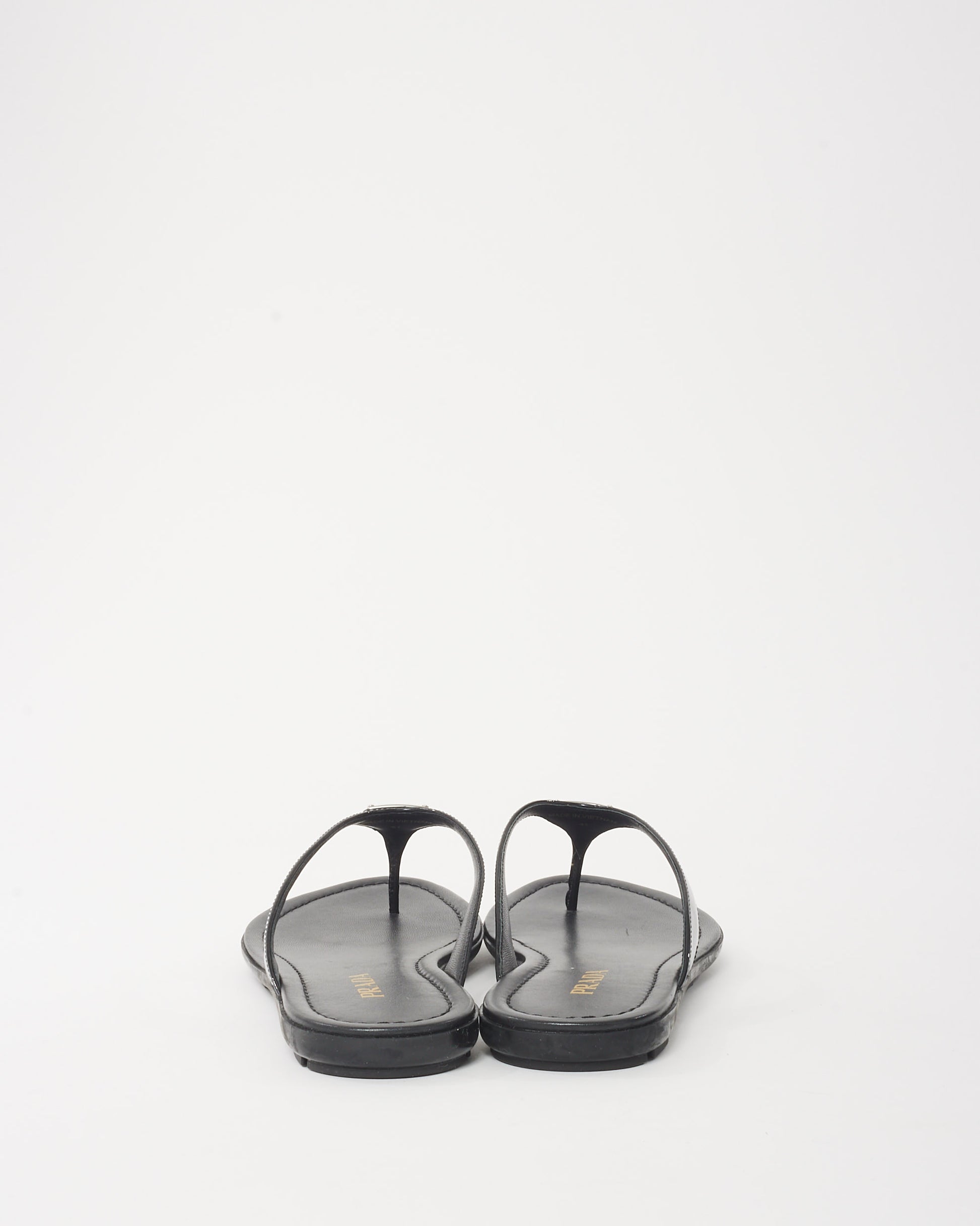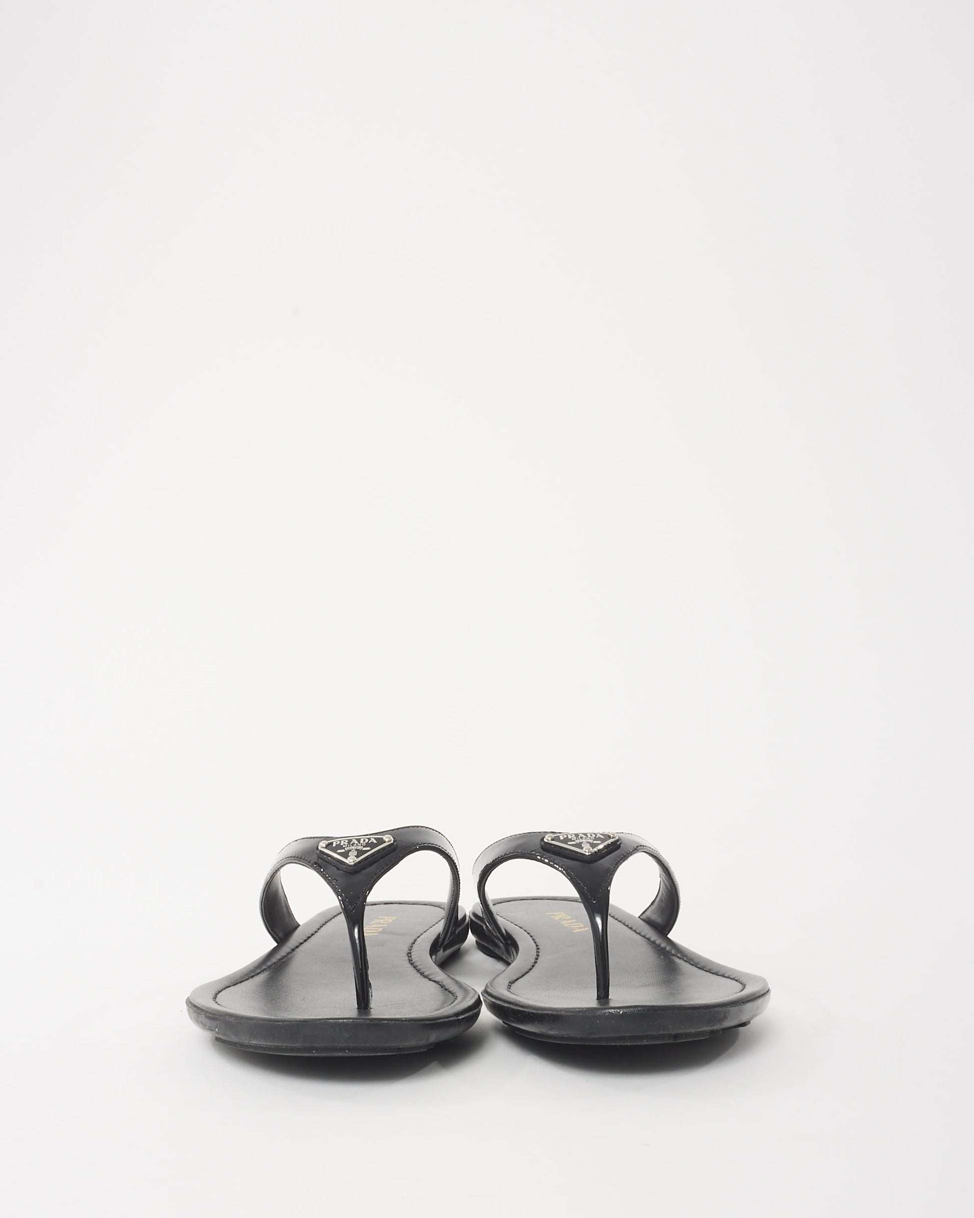 Black Patent Leather Logo Flip Flop Sandals - 41
