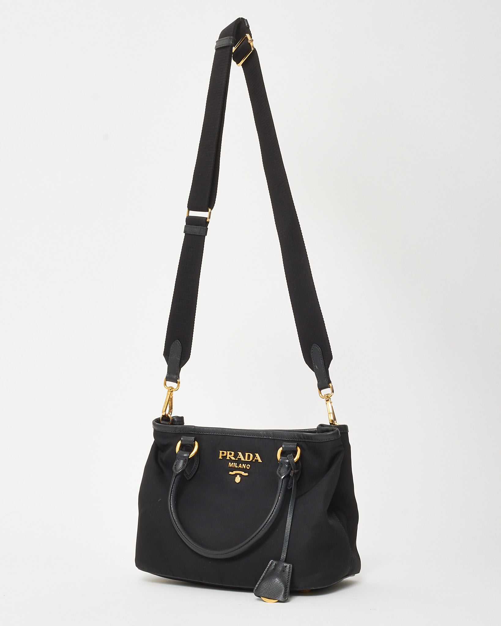 Black Saffiano-Trimmed Tessuto Nylon Logo Top Handle 2Way Bag