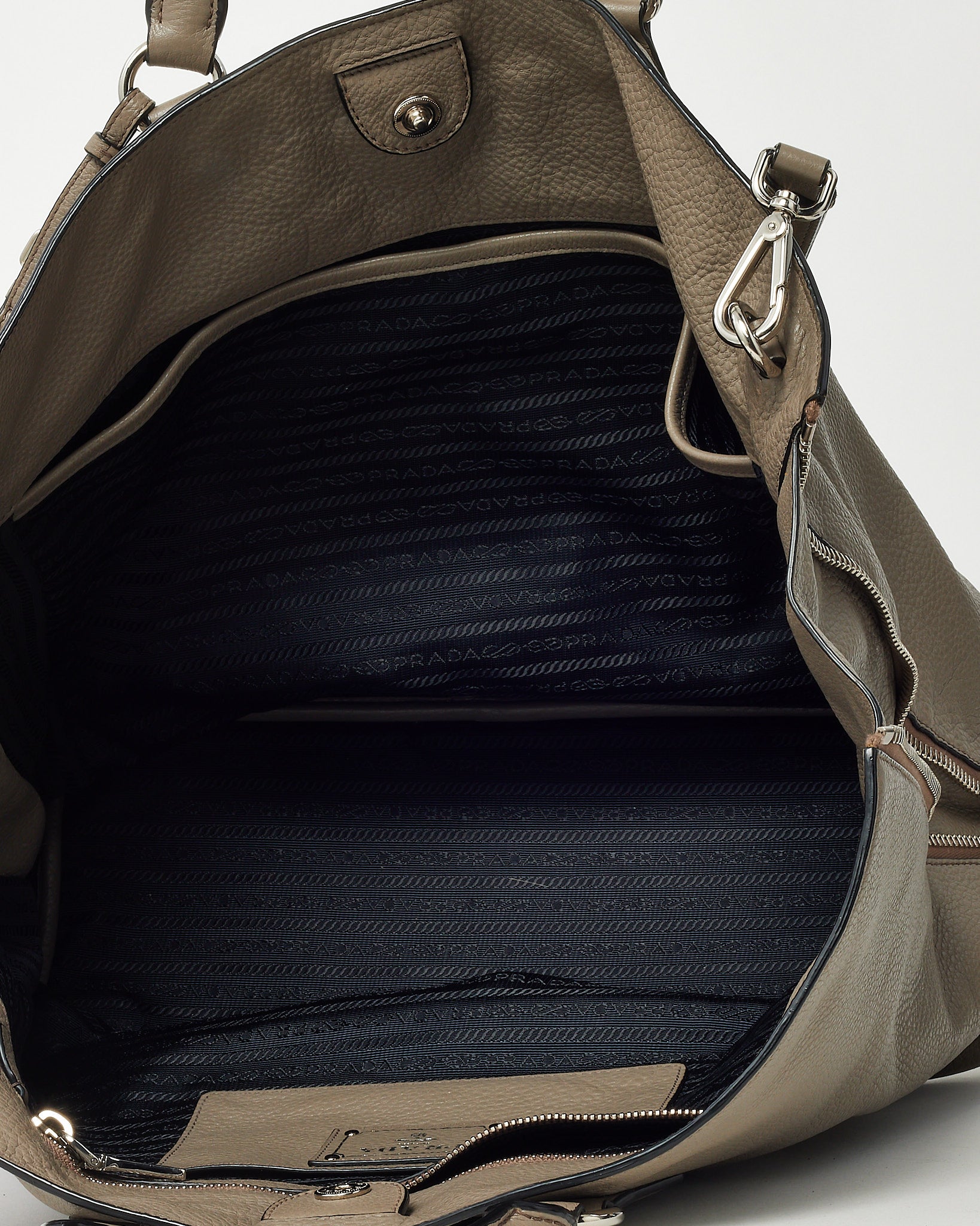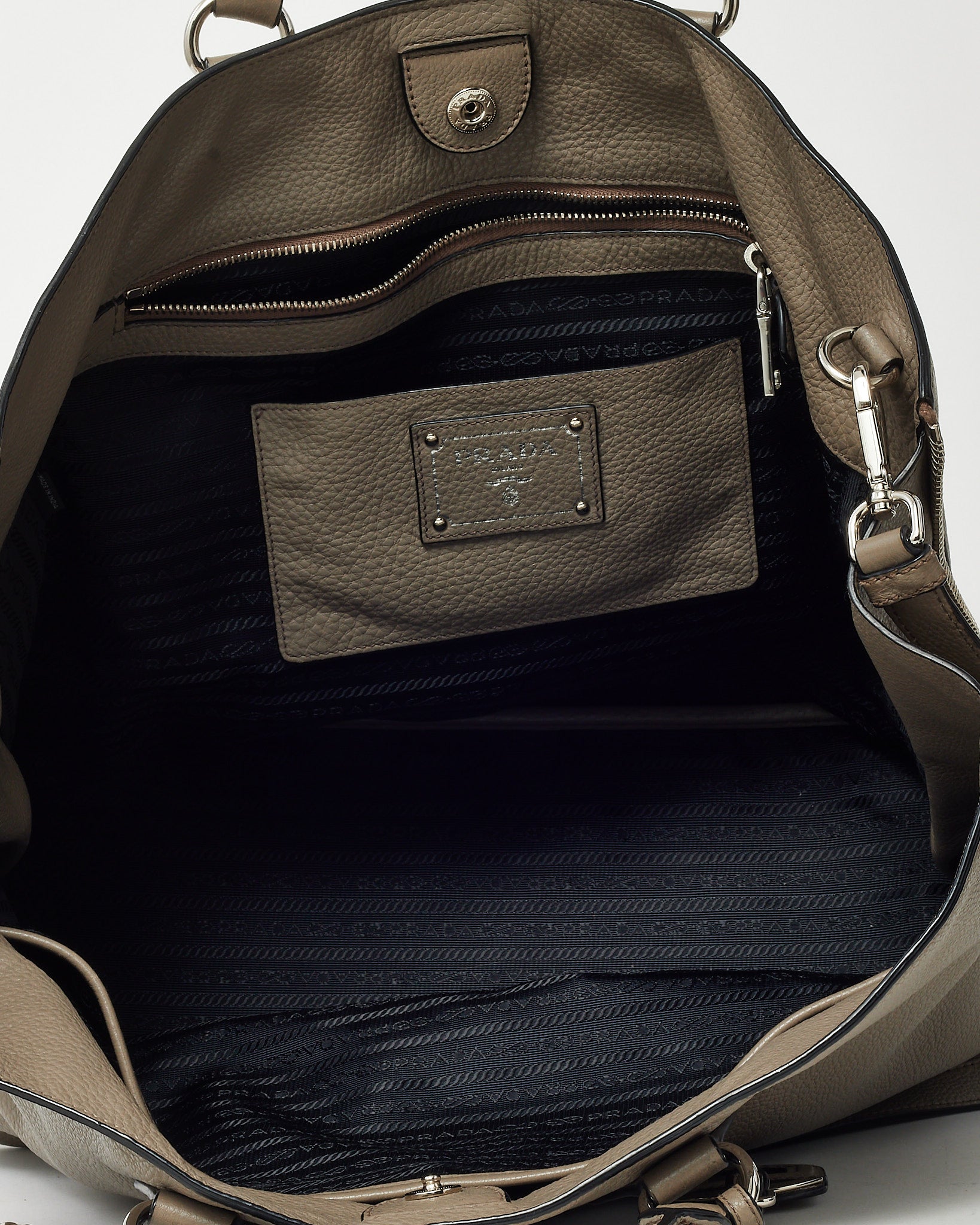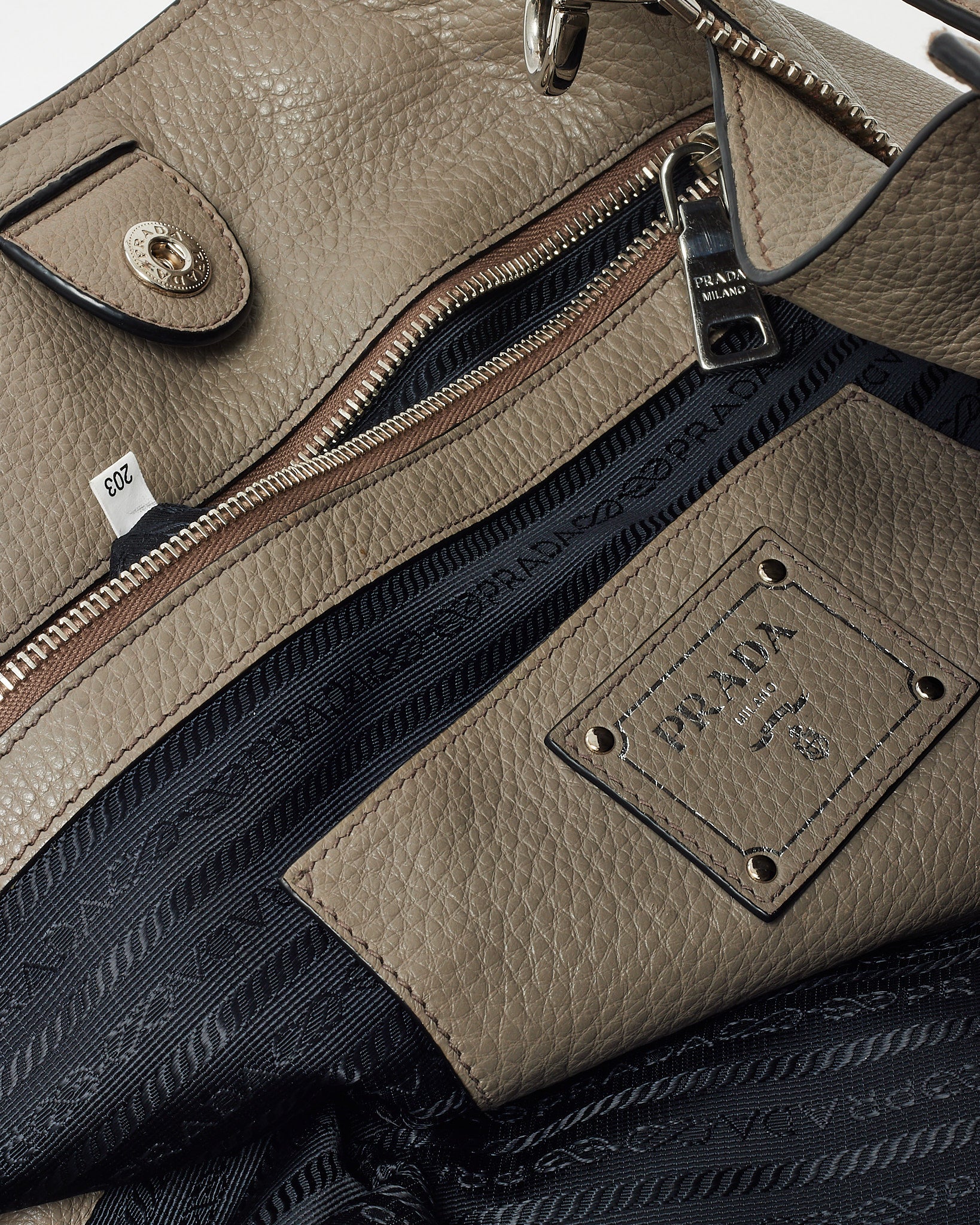 Elevate your everyday carry with this pre-loved authentic Prada Grey Black Vitello Daino Leather Large Zip Tote Bag with Strap SHW, crafted in soft yet durable Vitello Daino leather for a rich, pebbled finish. The spacious tote silhouette features a secure zip-top closure, structured handles, and a detachable strap for versatile shoulder or crossbody wear. Designed with a roomy interior to accommodate daily essentials, work items, or travel needs, this Prada bag blends practicality with refined Italian craftsmanship. A timeless designer tote that delivers functionality, versatility, and understated luxury.