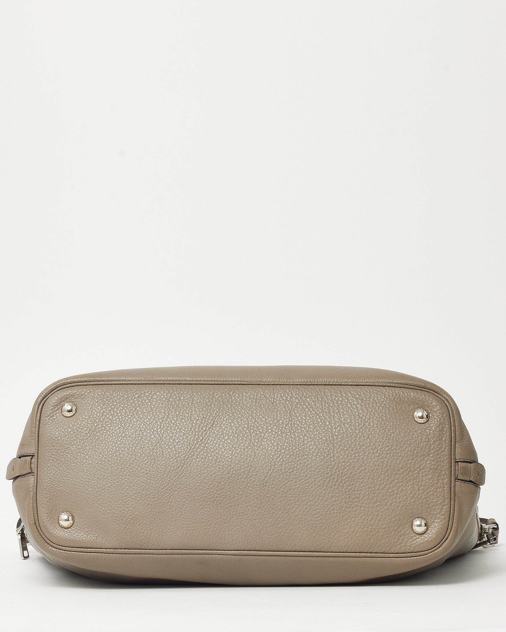 Grey Black Vitello Daino Leather Large Zip Tote Bag with Strap SHW