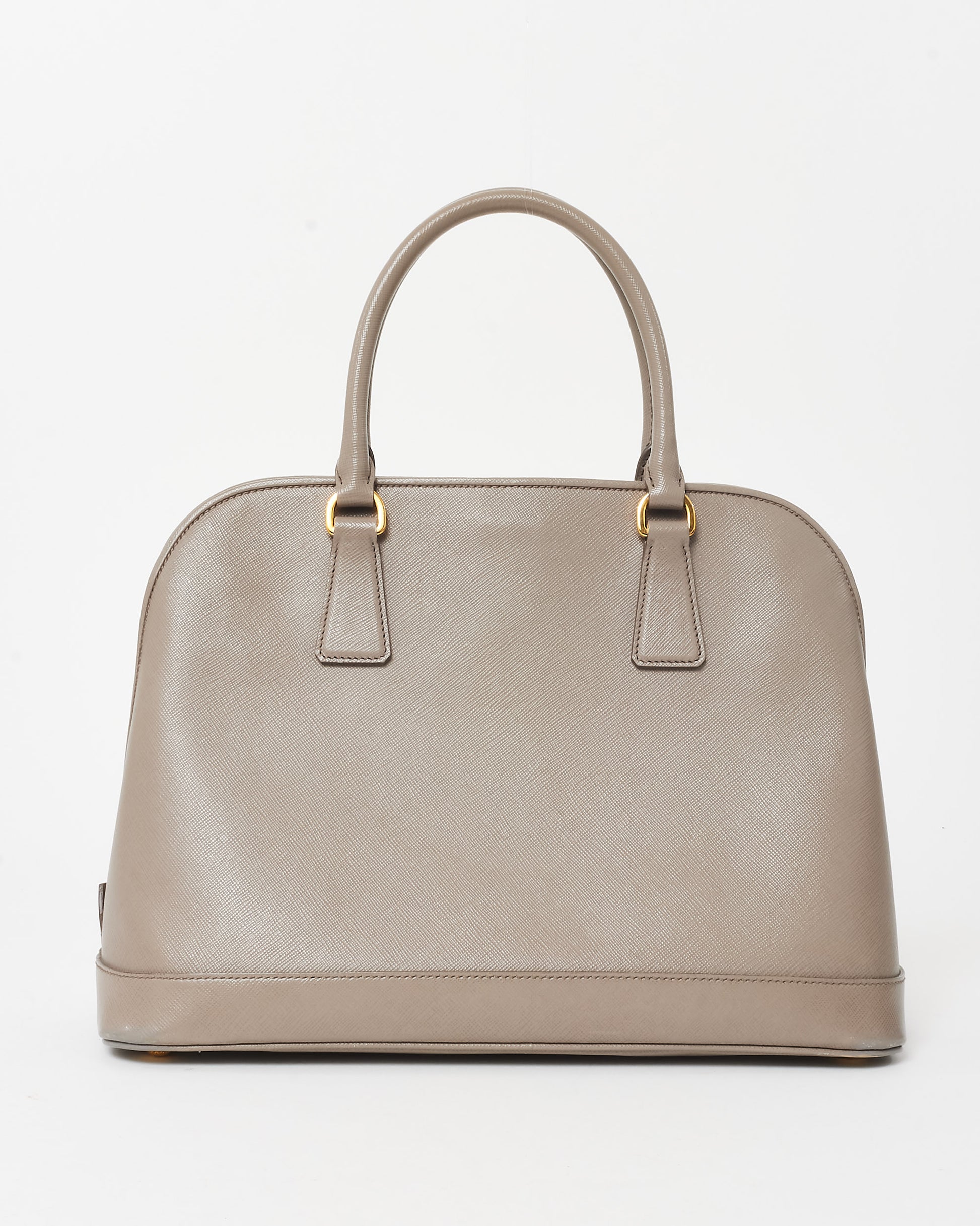 A refined and structured essential, the pre-owned authentic Prada Grey Saffiano Leather Medium Promenade Tote embodies timeless sophistication and everyday luxury. Crafted from durable grey Saffiano leather, this tote features a sleek, structured silhouette, offering both elegance and practicality.