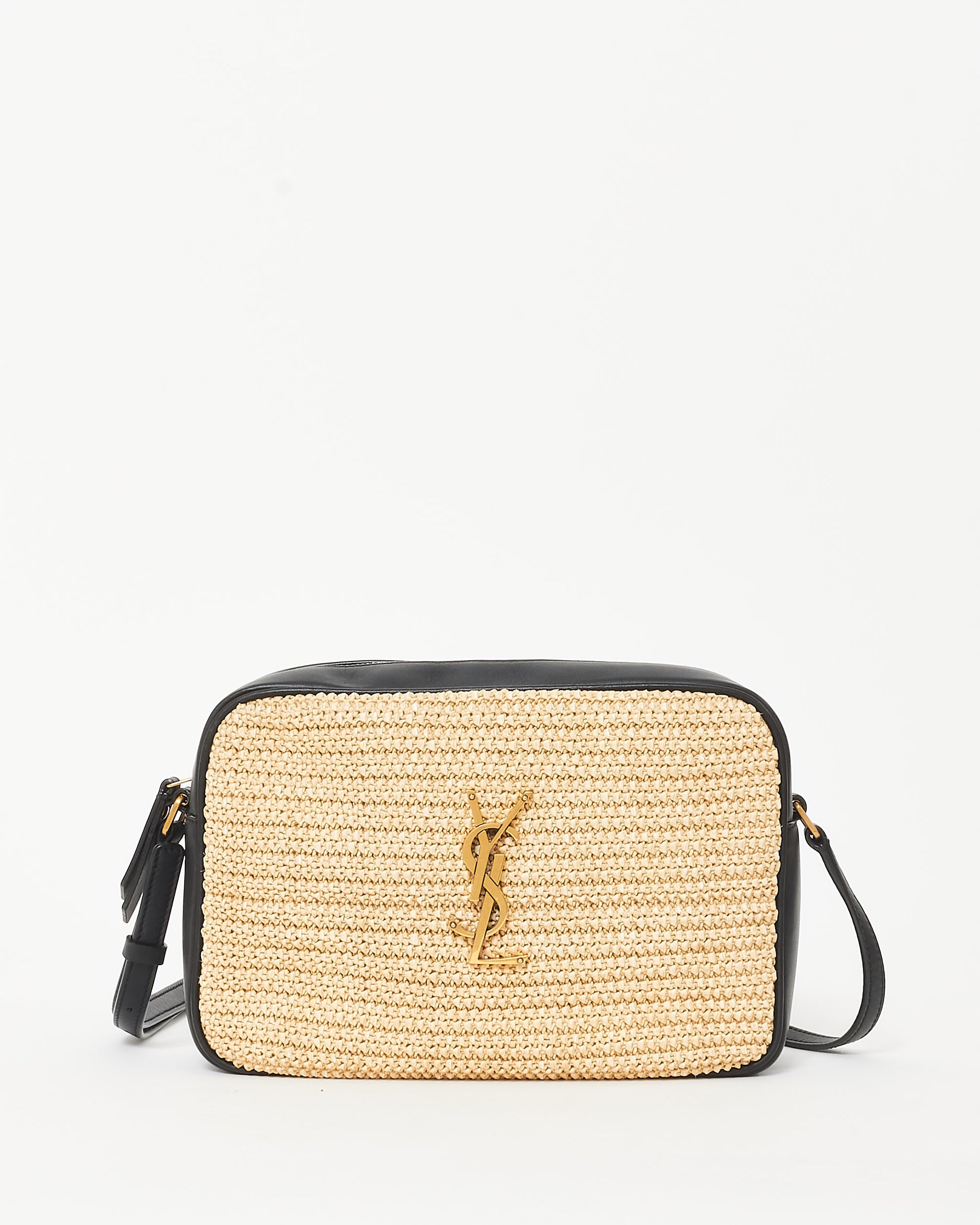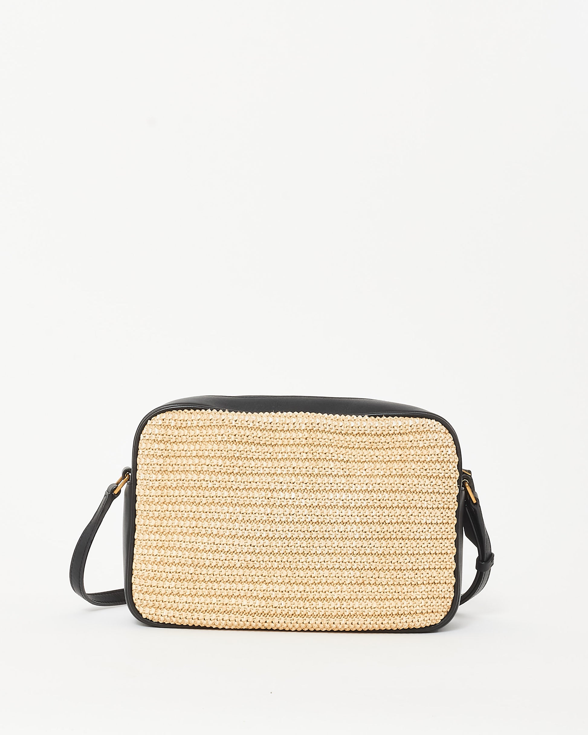 Beige Raffia & Black Leather GHW Lou Camera Bag