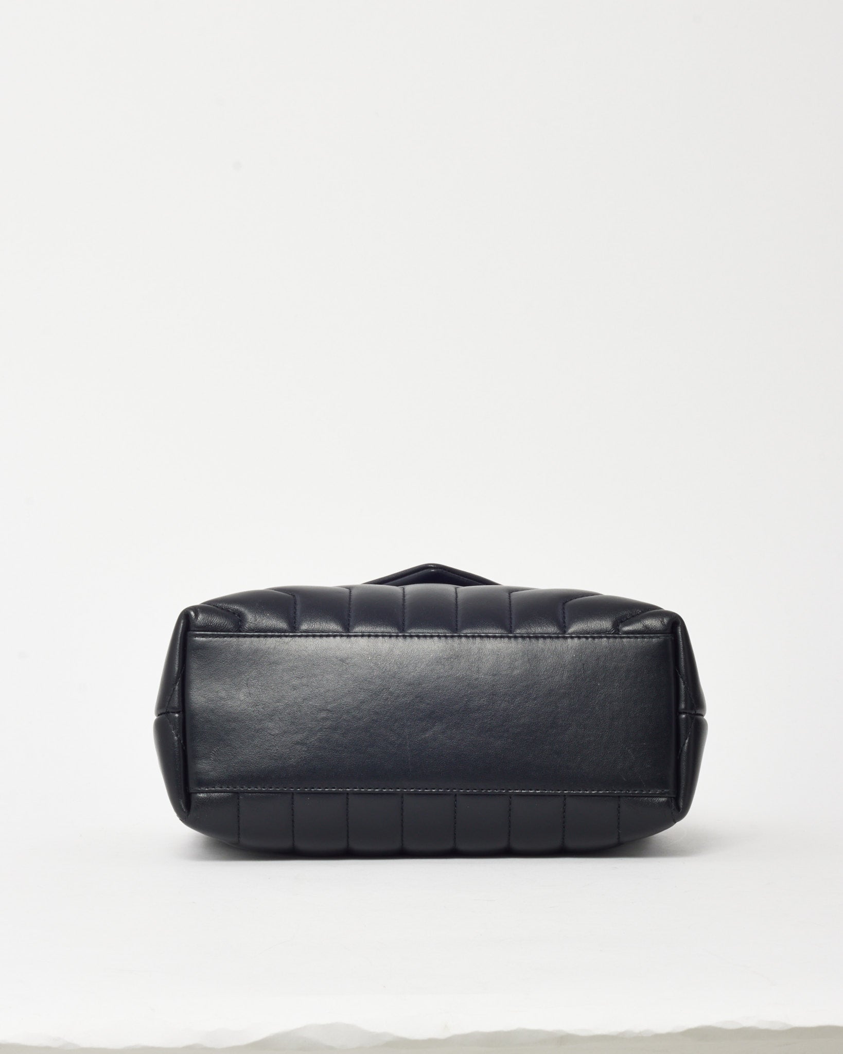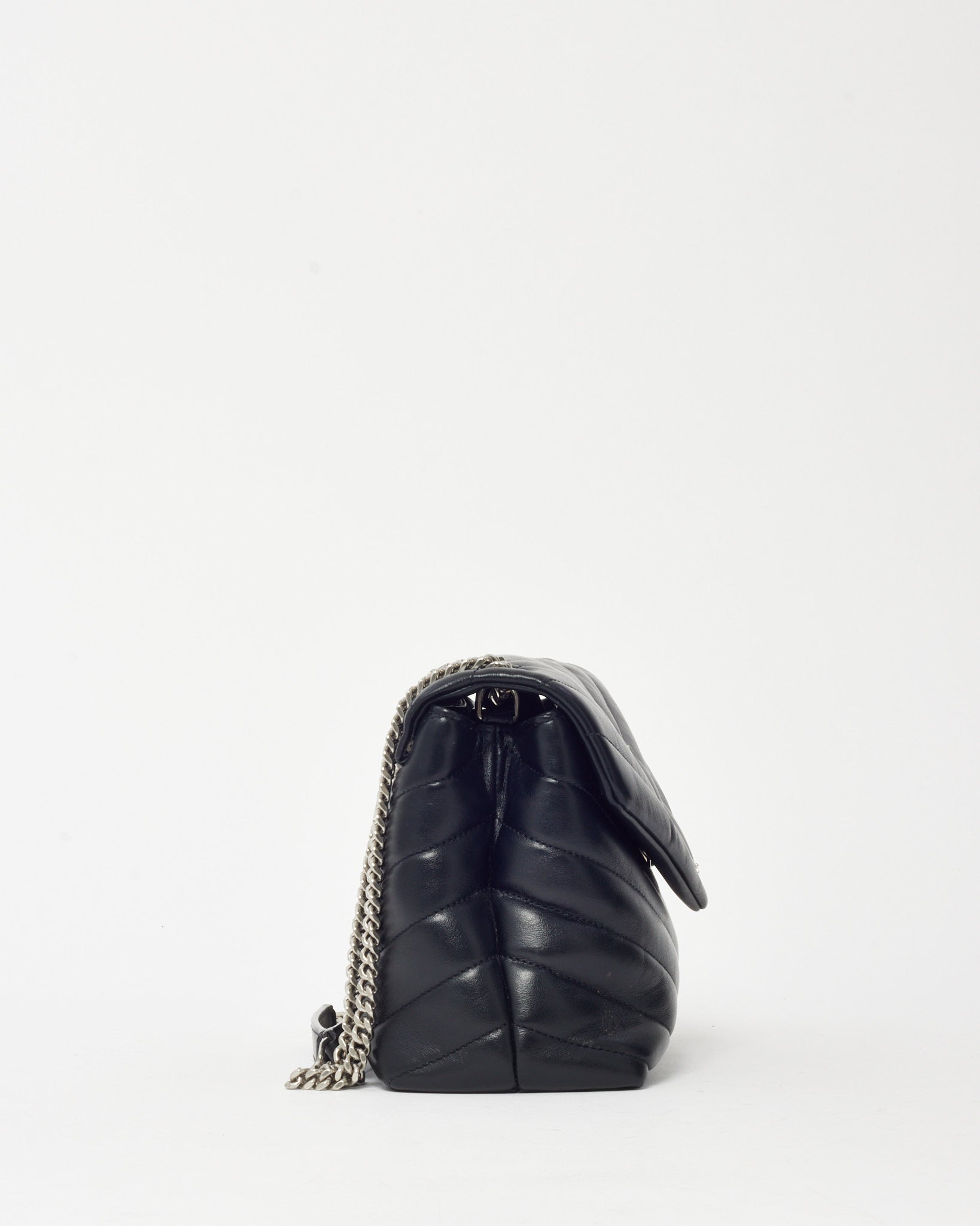 Black Chevron Leather Small YSL Monogram Loulou Shoulder Bag SHW