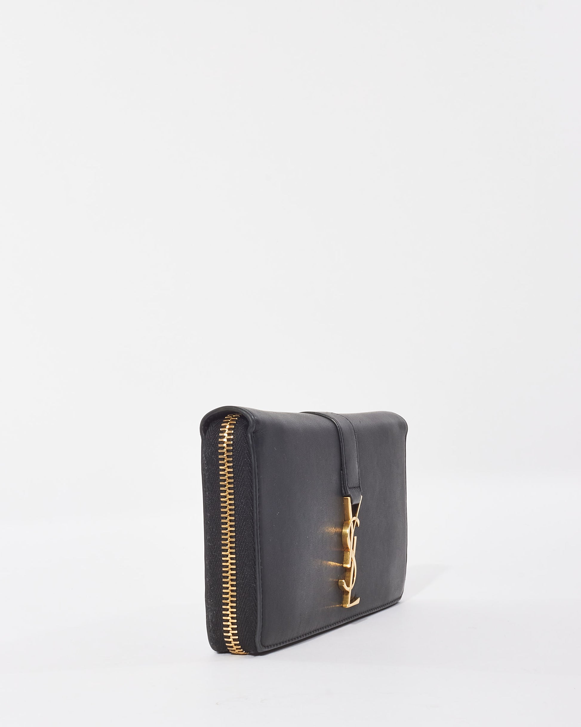 Explore Saint Laurent's exquisite collection of accessories, featuring this certified pre-owned Black Leather Logo Flap Long Zip Wallet. Embodying timeless elegance and modern sustainability, each piece, including favorites like this, is authenticated by Retyche. Discover sustainable luxury — shop our current treasures or find inspiration for your next coveted find.