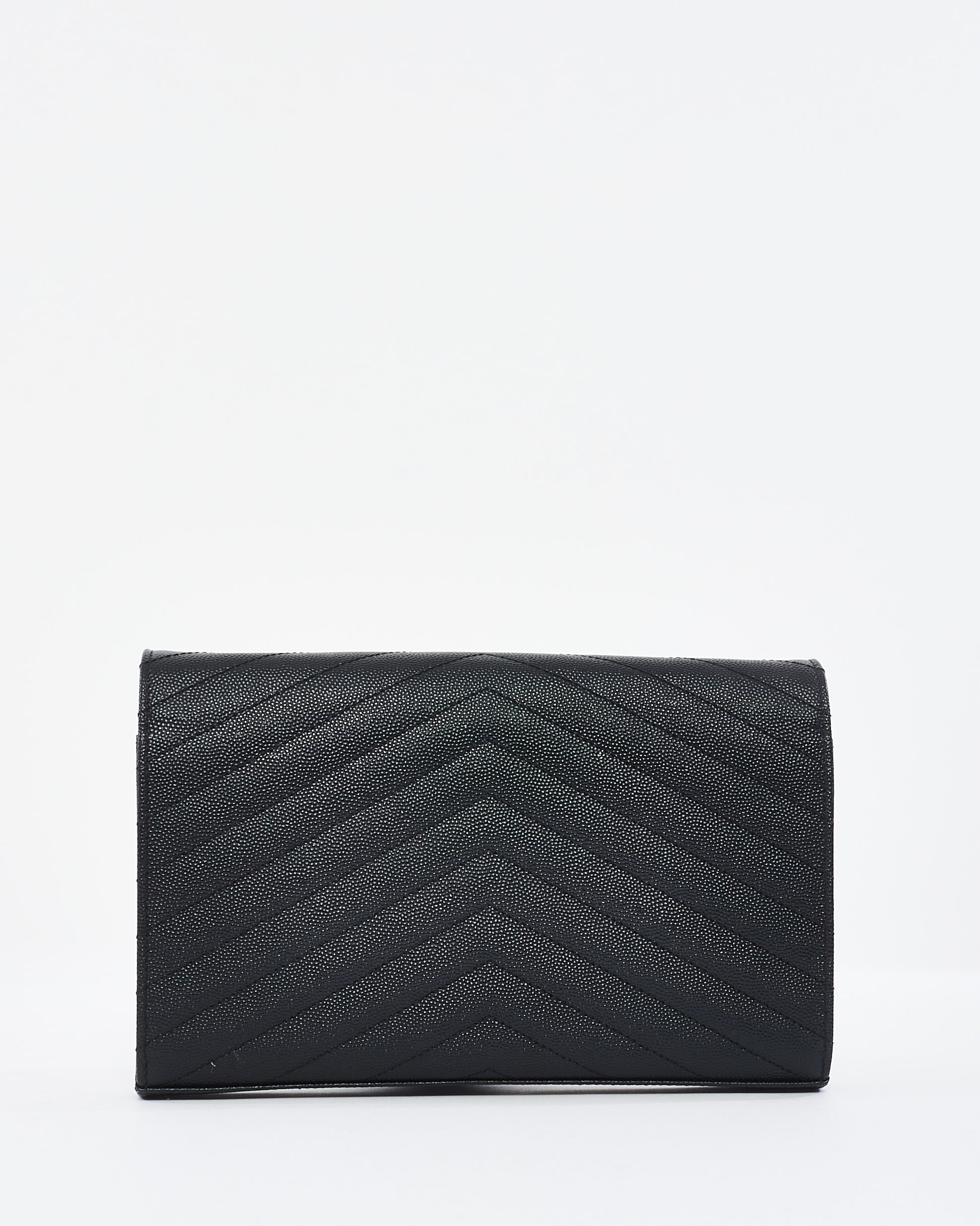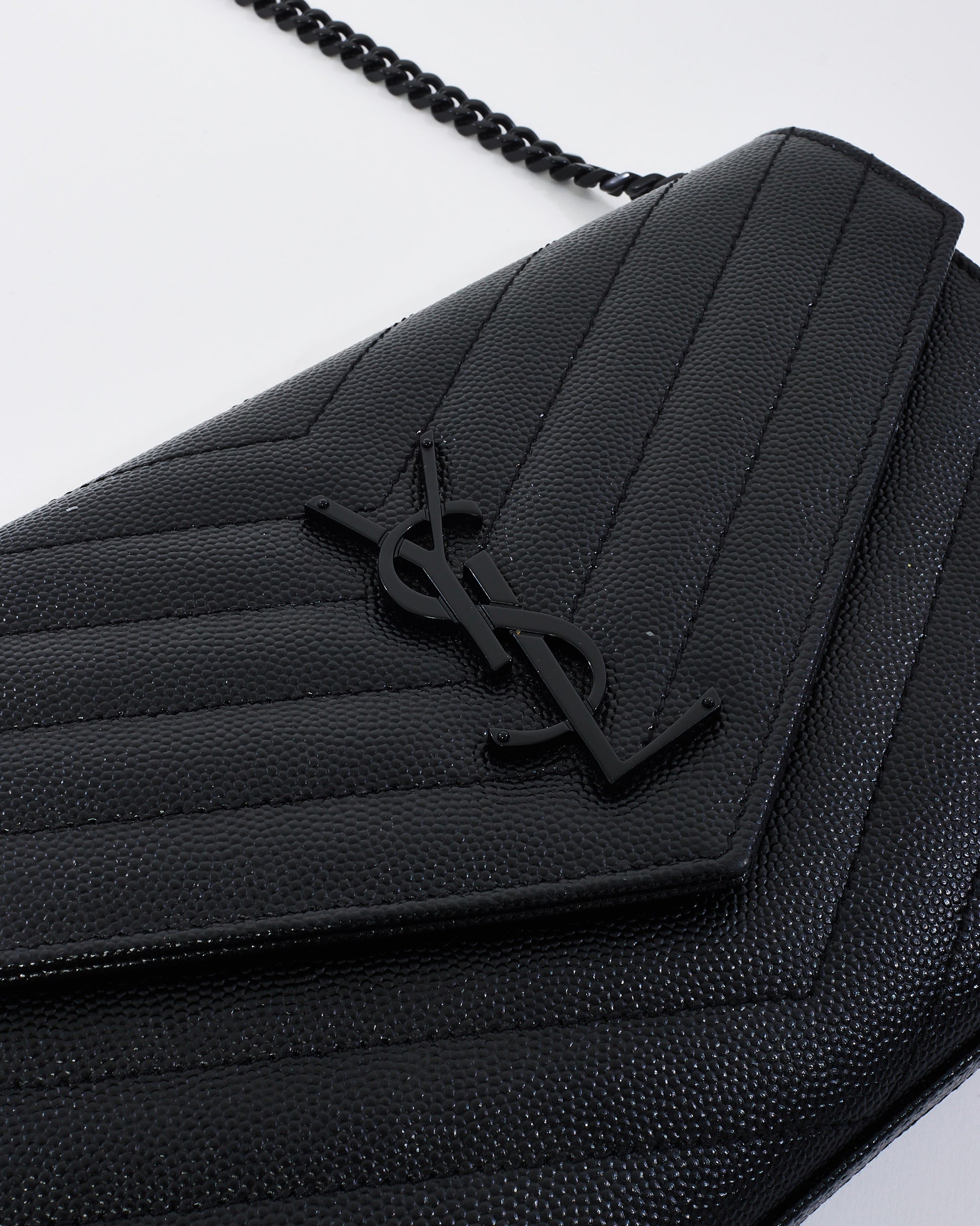 Black on Black Grain de Poudre Leather Monogram Cassandre Wallet on Chain Bag