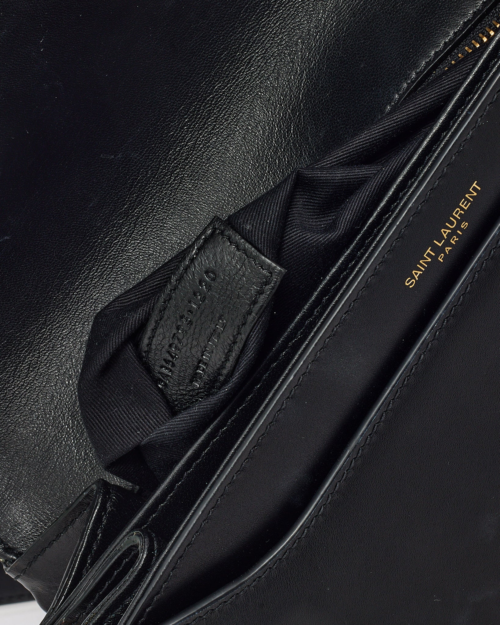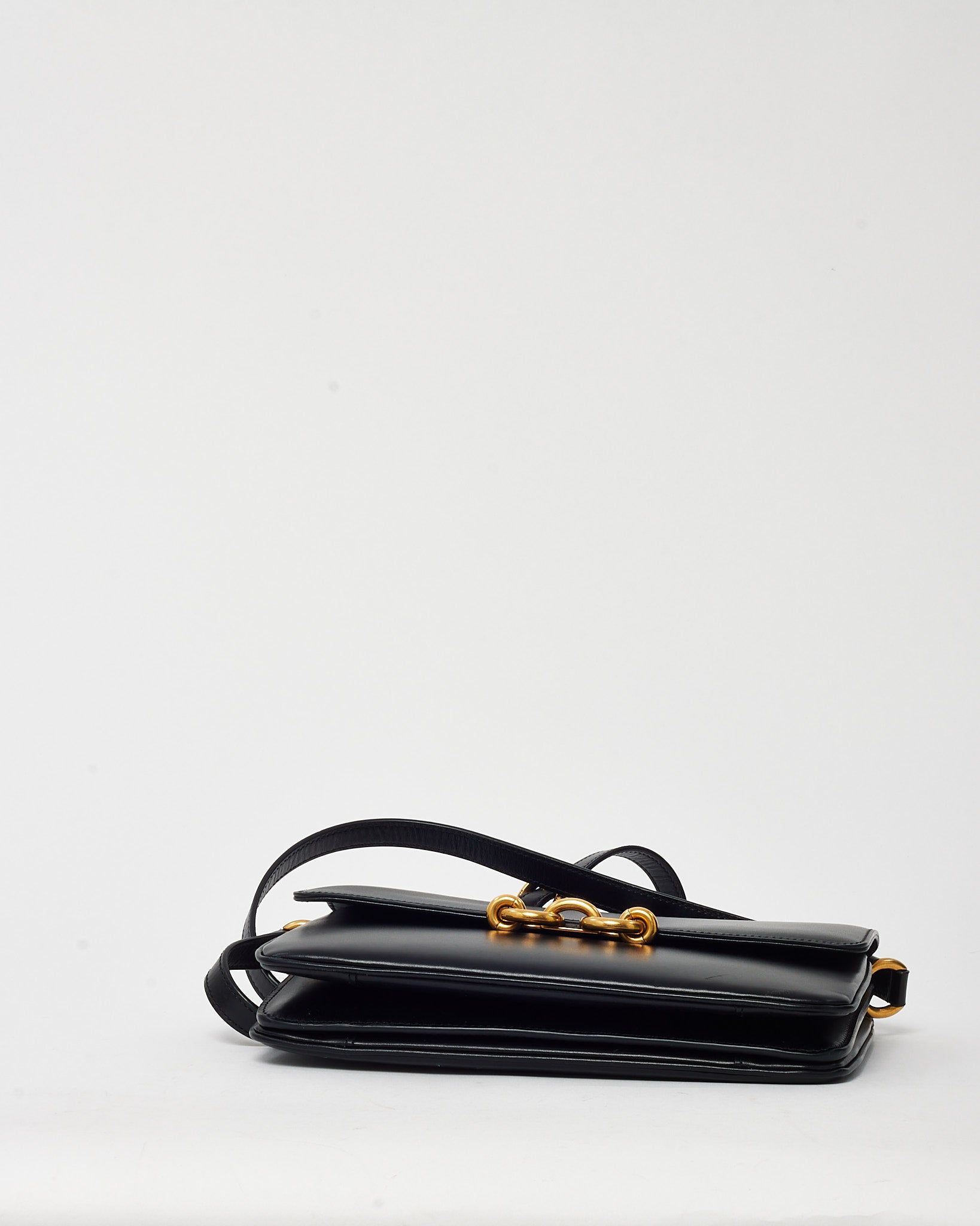 Elevate your everyday style with this pre-loved authentic Saint Laurent Black Smooth Leather Le Maillon Satchel Crossbody Bag. Crafted from luxurious black calfskin leather, this structured silhouette is defined by its sleek flap front and bold gold-tone chain-link hardware—an homage to the bag’s name, “Le Maillon,” meaning “the link” in French. The adjustable leather strap offers crossbody or shoulder wear, while the leather-lined interior keeps essentials secure and organized. Sophisticated and minimalist, it’s a timeless piece with modern Saint Laurent elegance.