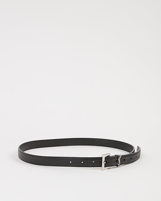 Black Smooth Leather Skinny Belt - 70