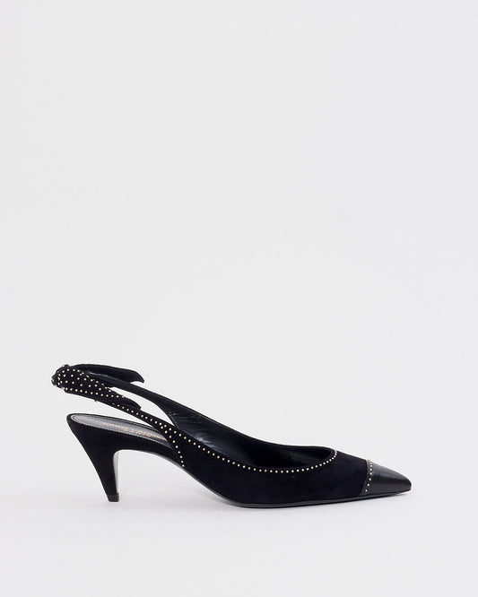 Black Suede Charlotte Studded Slingback Pumps 55mm - 38.5