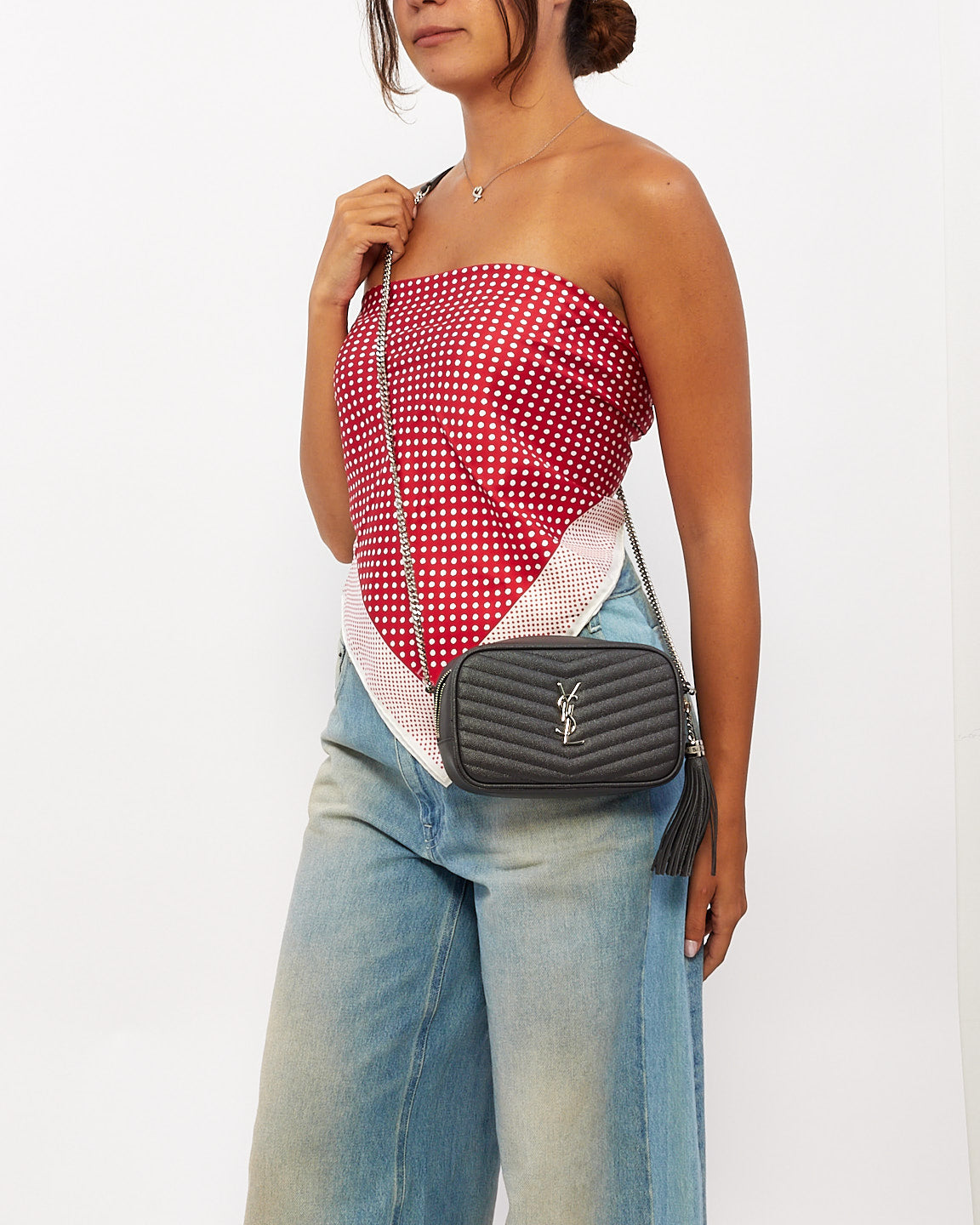 Grey Quilted Leather Mini Lou Camera Bag