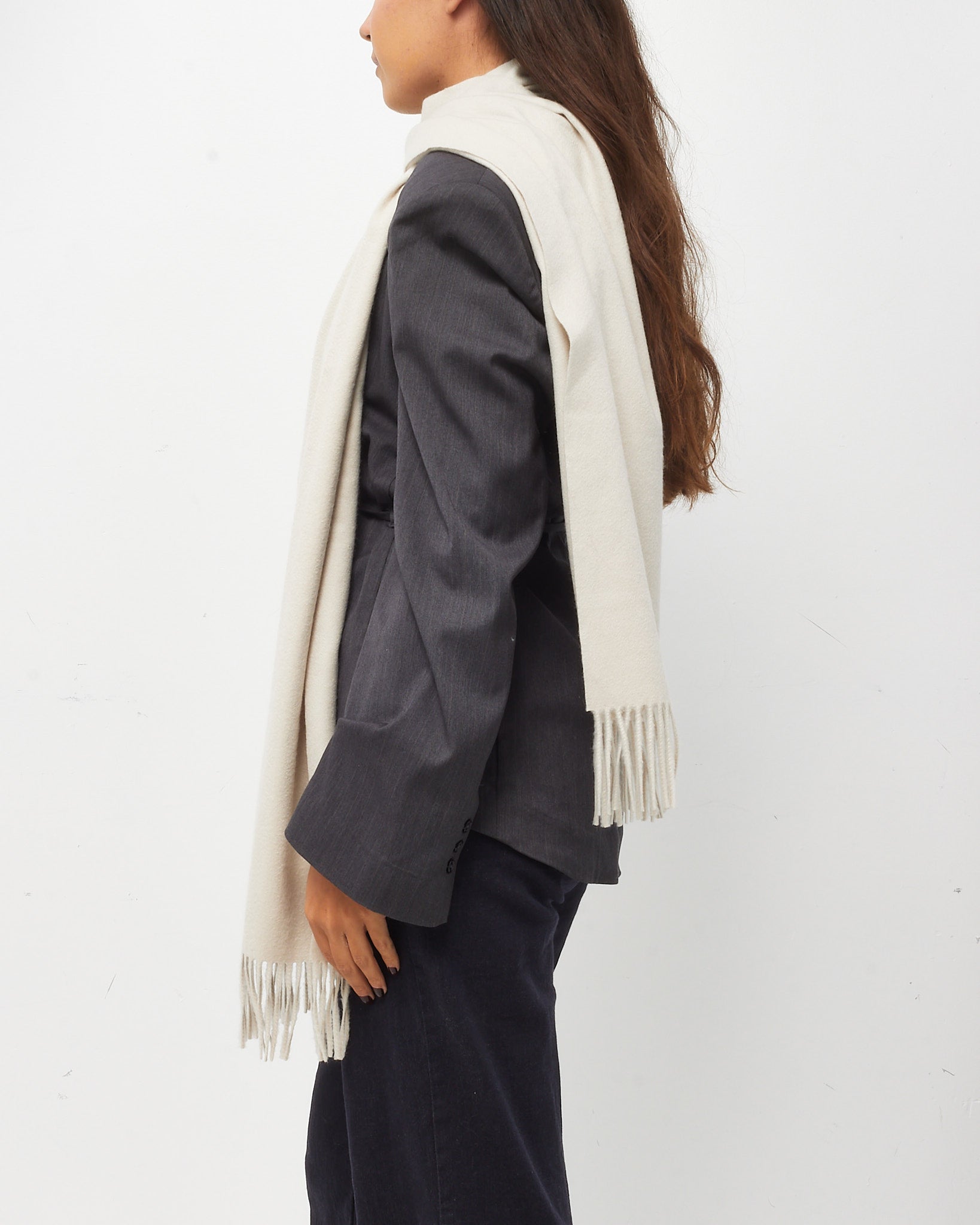Ivory Cashmere Jacquard Logo Fringe Signature Scarf