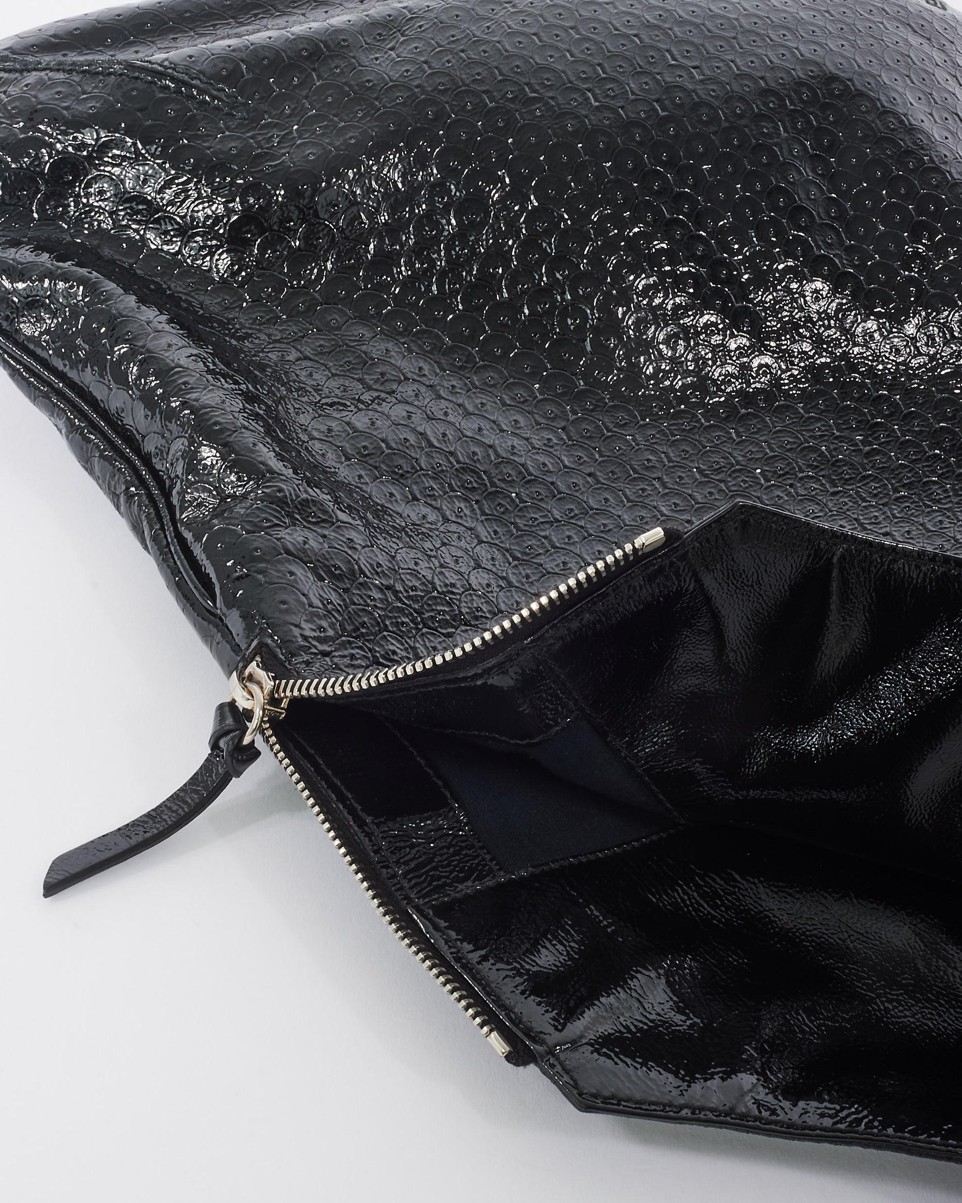Black Lizard Embossed Patent Leather Downtown Tote Bag