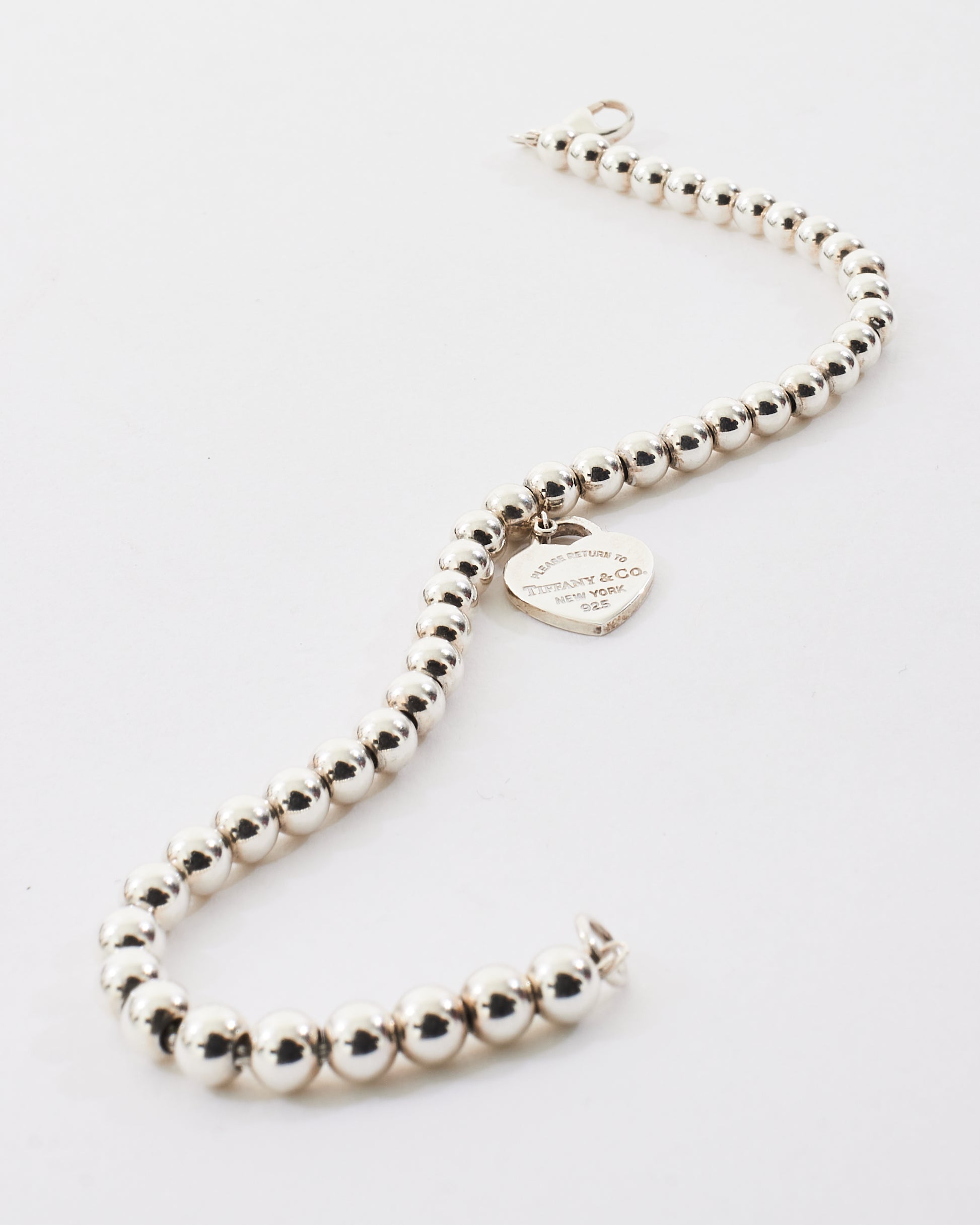 Sterling Silver Heart Charm Beaded Bracelet