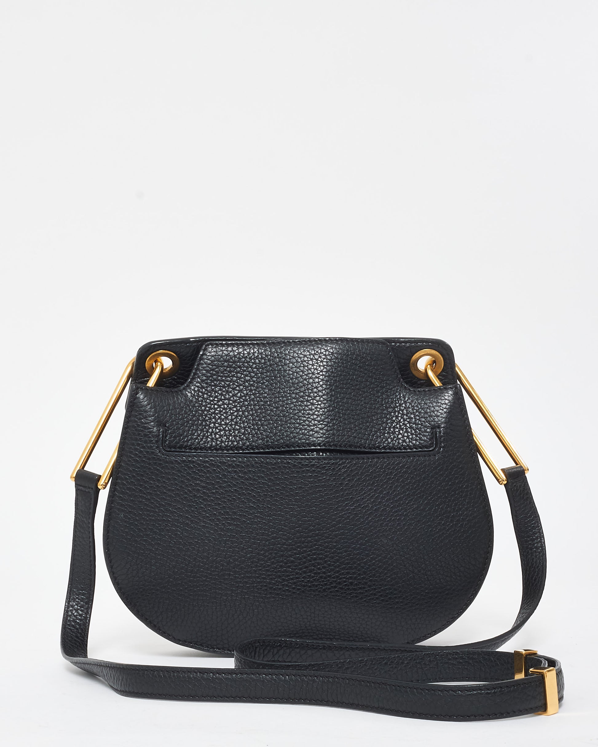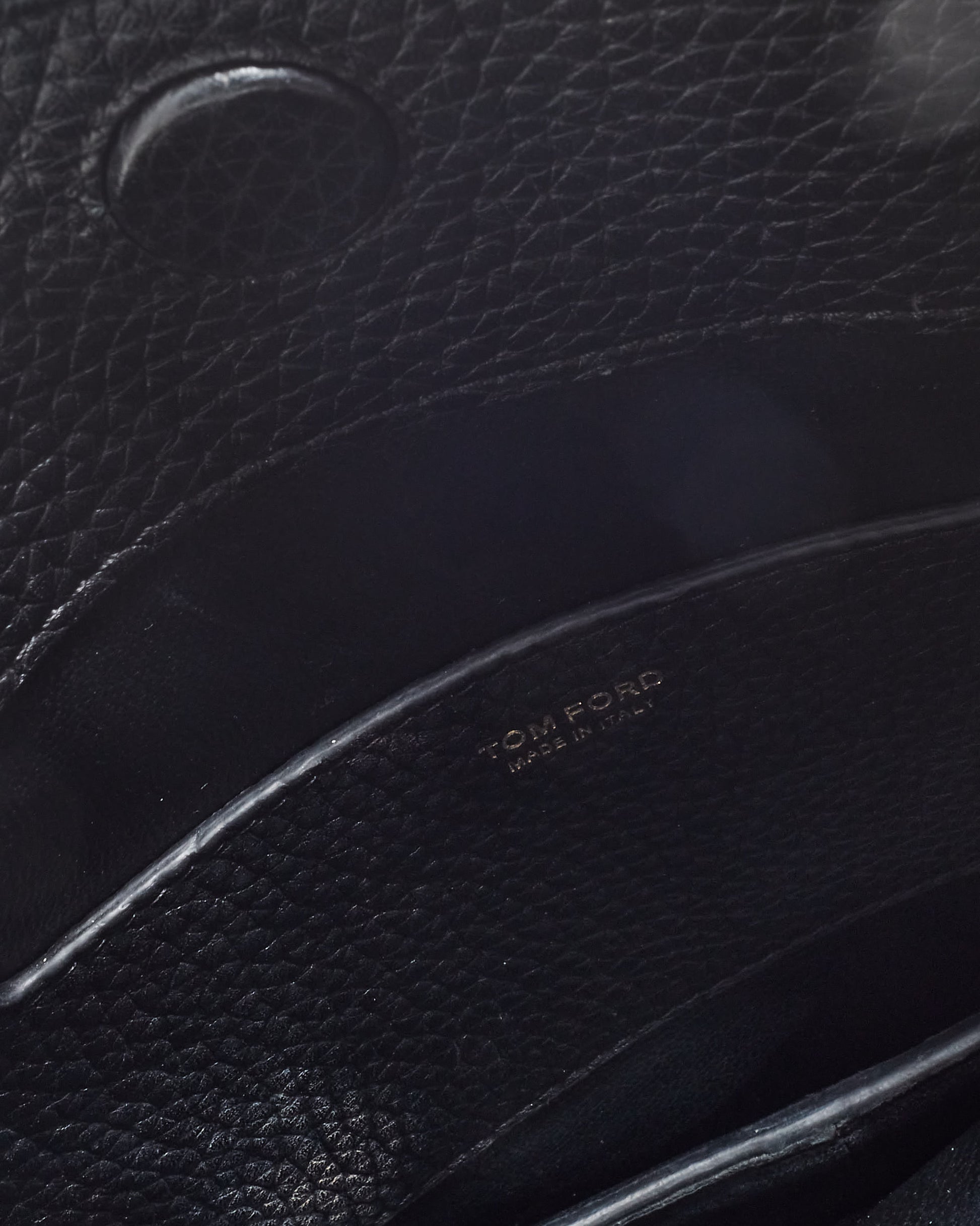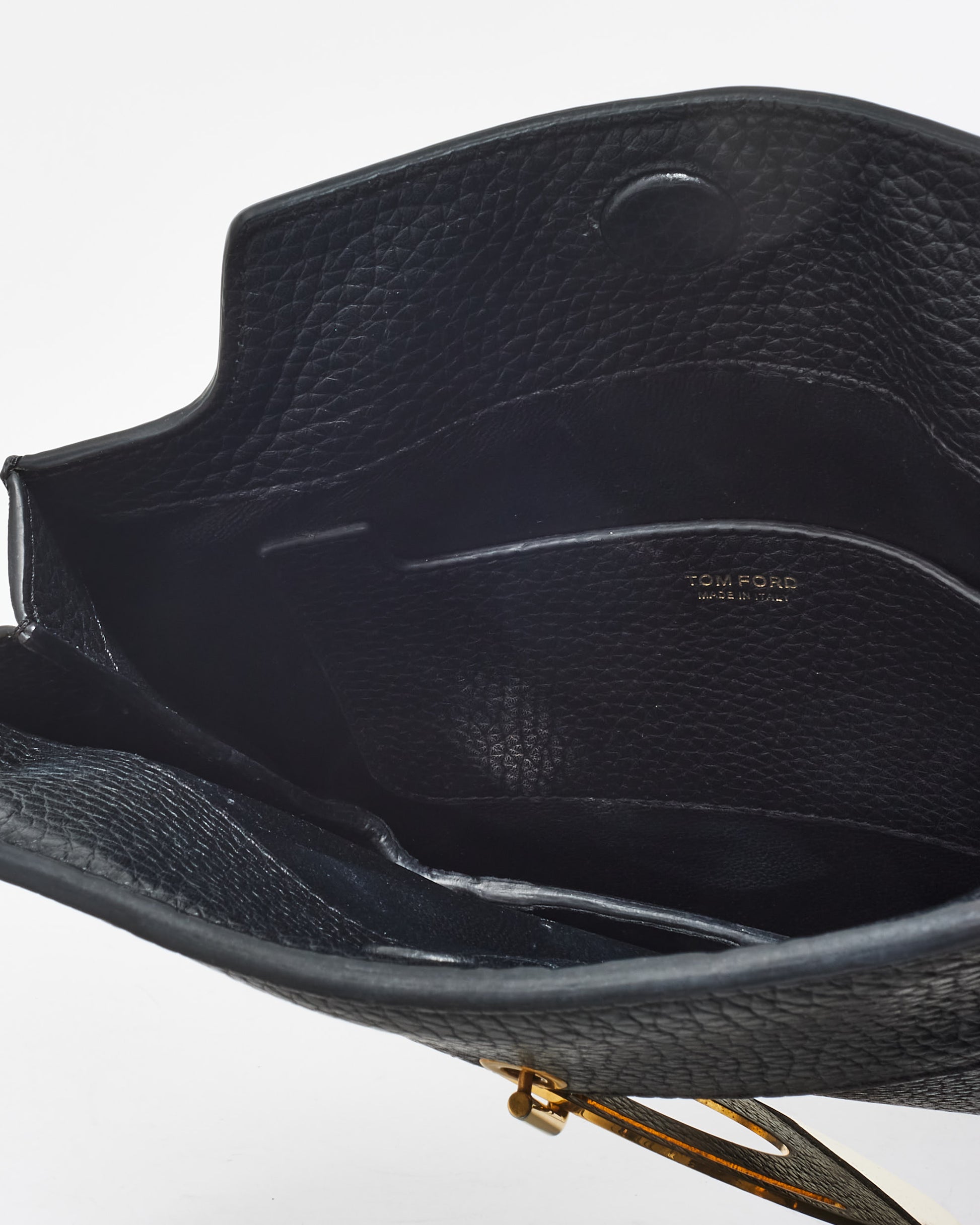 Explore Tom Ford's exquisite collection of handbags, featuring this certified pre-owned Black Leather & Gold Statement Hardware Crossbody Bag. Rounded black leather silhouette, gold hardware. Embodying timeless elegance and modern sustainability, each piece, including favorites like this, is authenticated by Retyche. Discover sustainable luxury — shop our current treasures or find inspiration for your next coveted find.