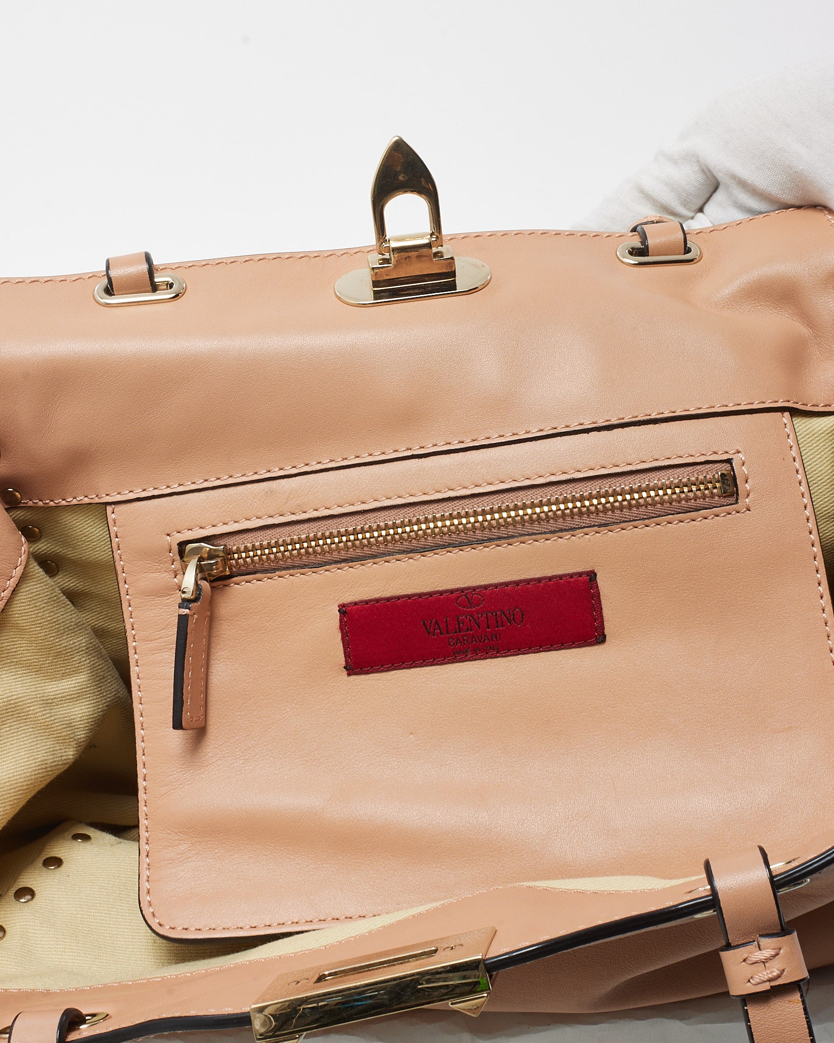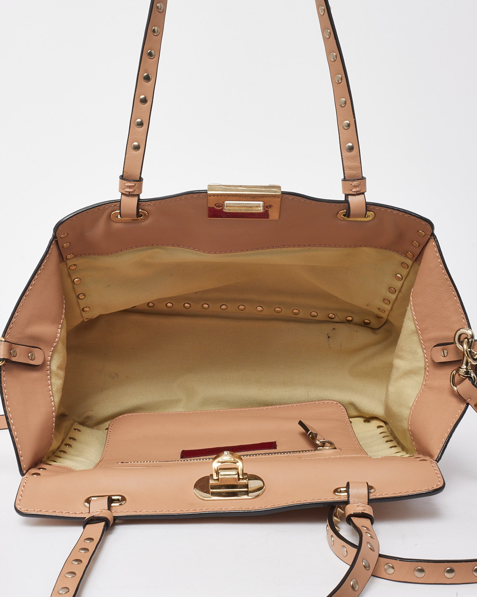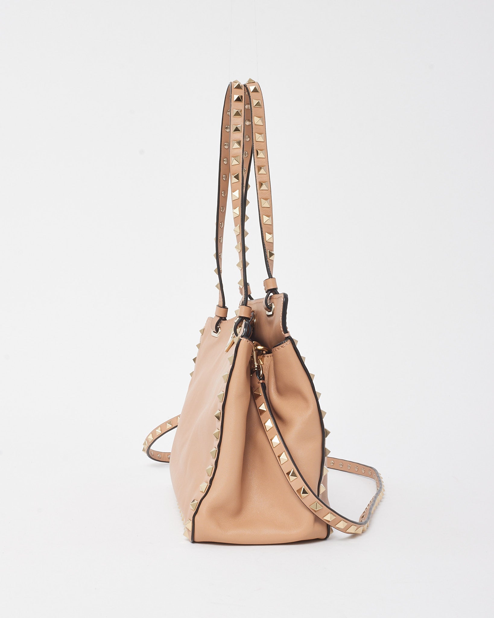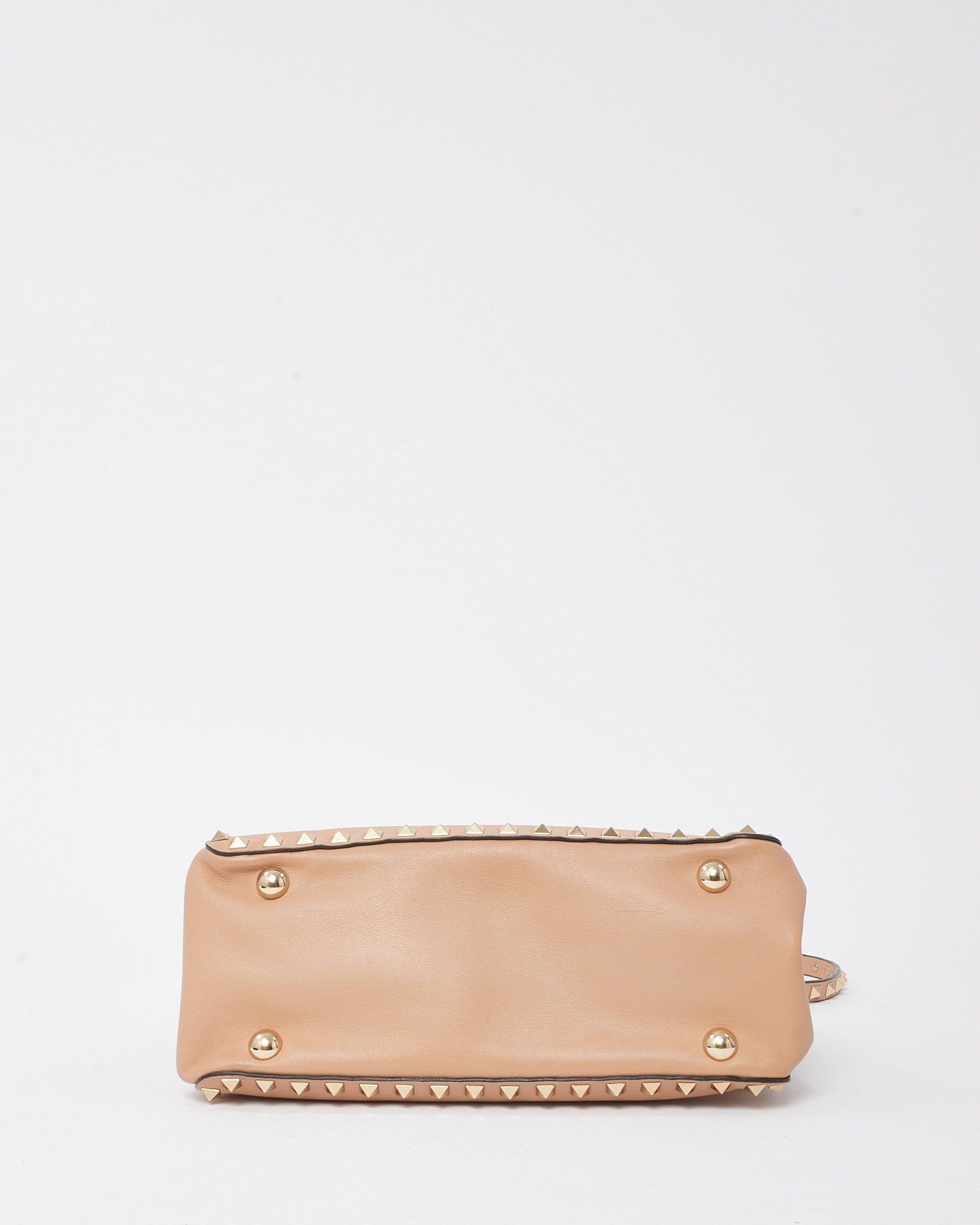 Soft Pink Leather Gold Rockstud Flip Lock Trapeze 2Way Shoulder Bag with Strap