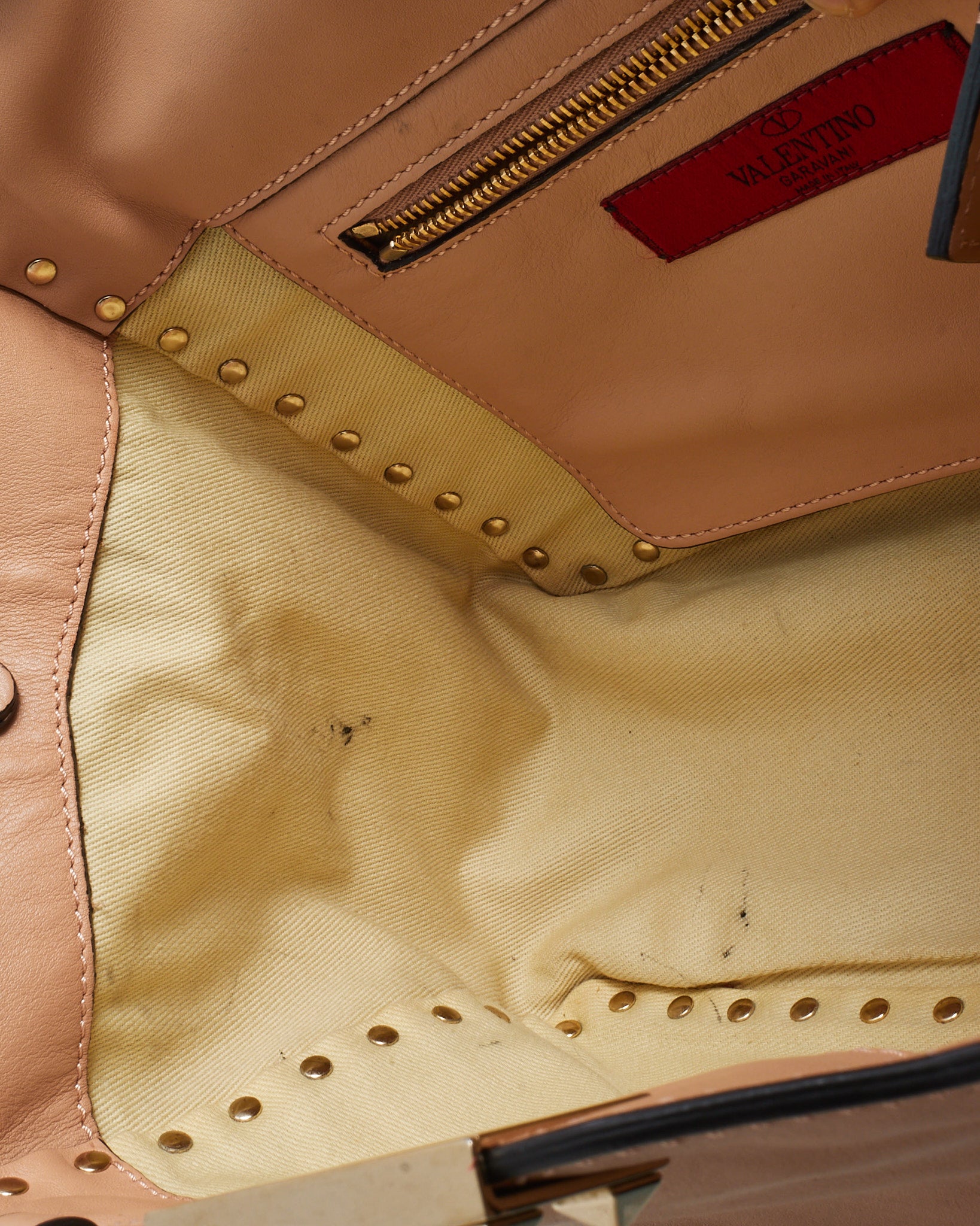 Add a soft yet striking touch to your collection with this pre-loved authentic Valentino Soft Pink Leather Gold Rockstud Flip Lock Trapeze 2Way Shoulder Bag with Strap. Expertly crafted from smooth leather in a delicate blush tone, this structured trapeze silhouette is accented by the house’s signature gold-tone pyramid Rockstuds for a bold contrast. The flip-lock closure secures a spacious interior ideal for daily essentials, while the dual carrying options—top handle and adjustable strap—offer versatile styling. Feminine, functional, and unmistakably Valentino, this piece adds refined edge to any wardrobe.