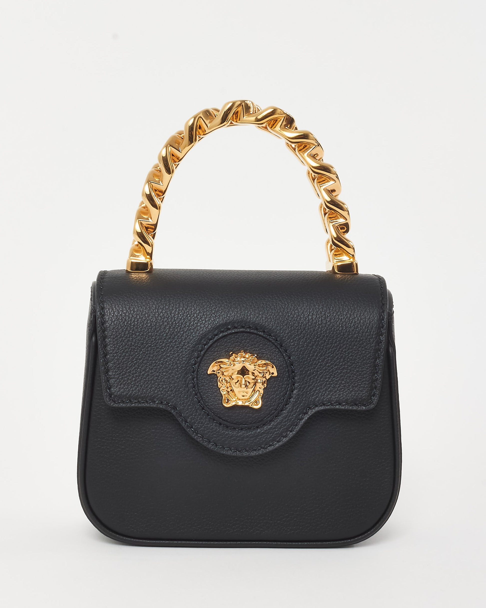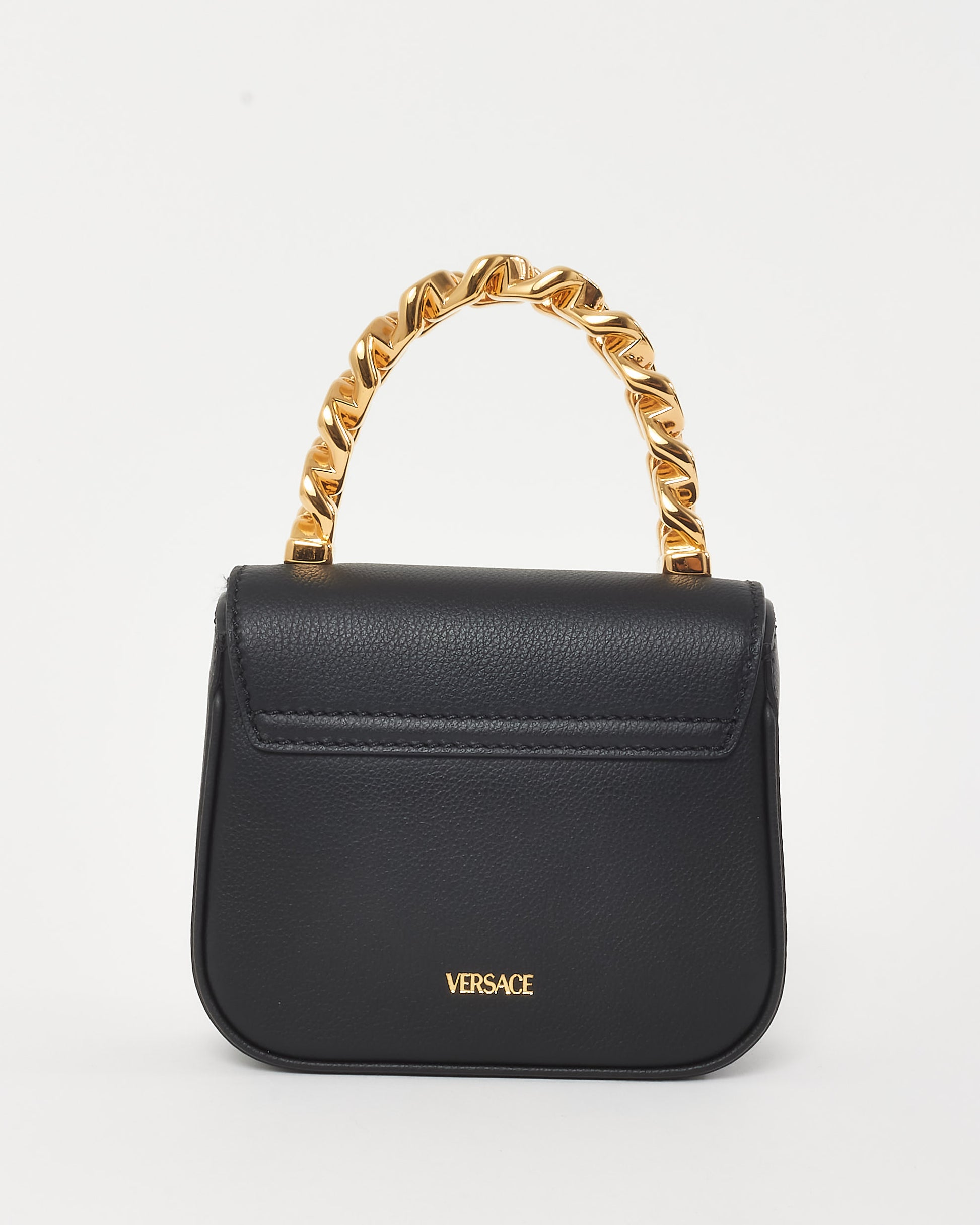 Black Grained Leather Medusa Head Mini Top Handle Bag