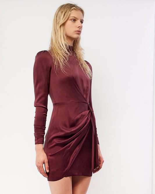 n Burgundy Silk Long Sleeve Turtleneck Dress - 0