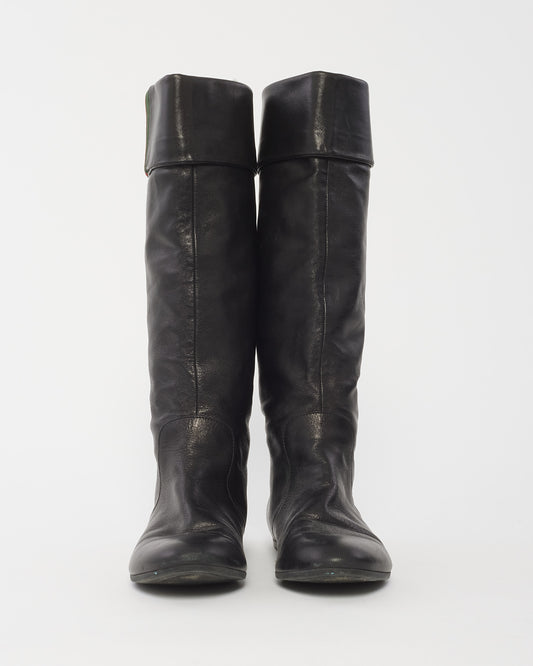 Sergio Rossi Black Leather Riding Boots - 36.5