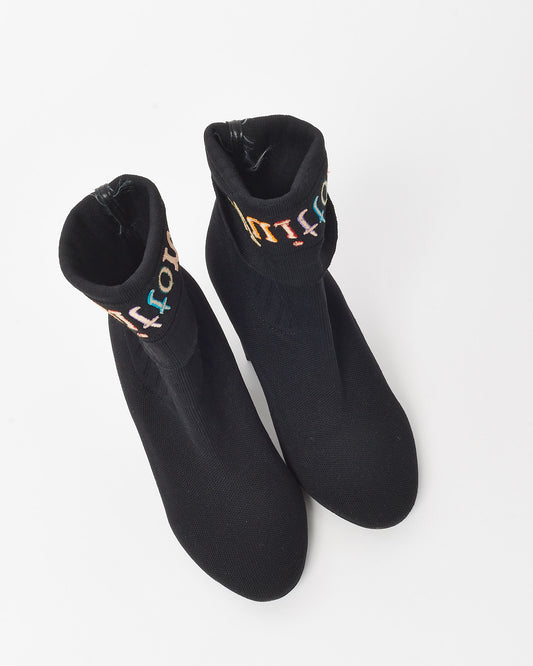 Black Calfskin Star Trail Heeled Ankle Boot - 38.5