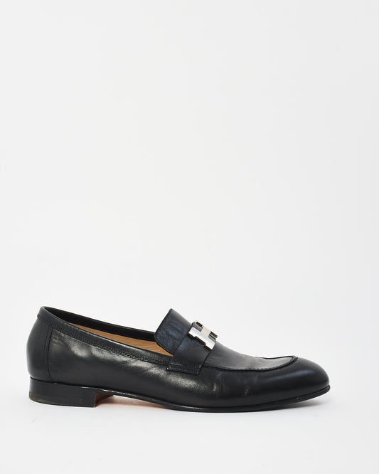 Men's Black Leather Semi-Pointed Toe Loafers - 43 MEN