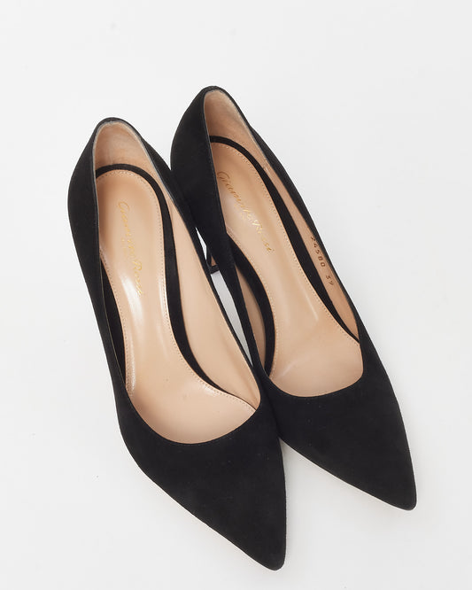 Black Suede 85mm Pointed Toe Pumps - 39