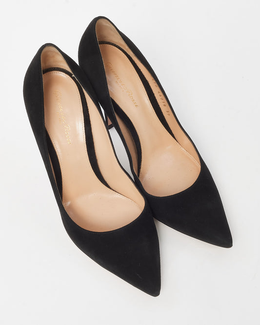 Black Suede 105mm Pointed Toe Pumps - 39