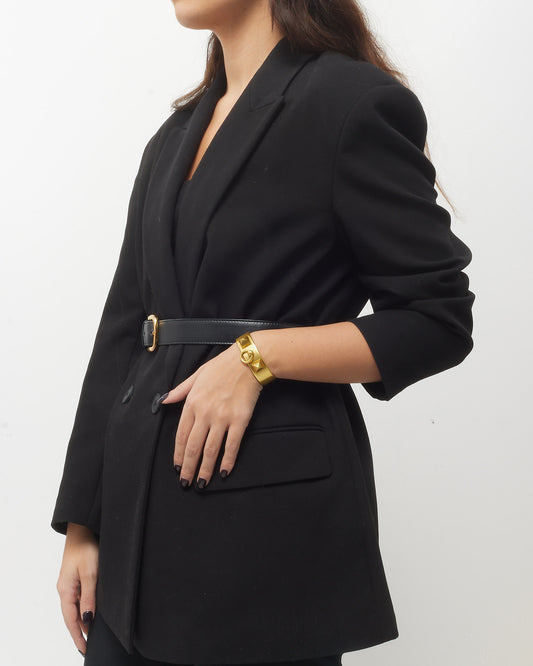 Black Nylon Double Breasted Zipper Trench Coat - 4