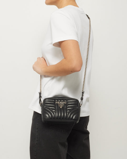 Sac à bandoulière Toy Loulou en cuir matelassé noir Y avec détails argentés