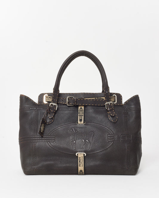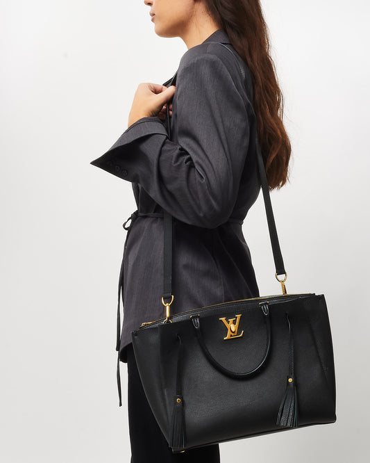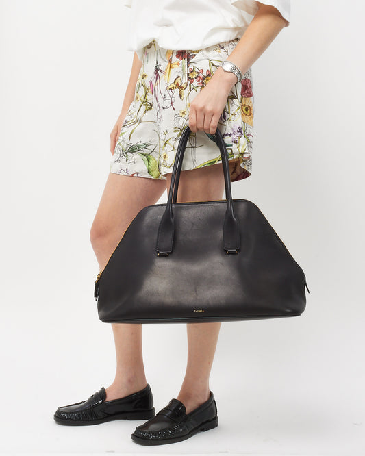 Black Grained Leather Miss Escape Shopping Tote Bag