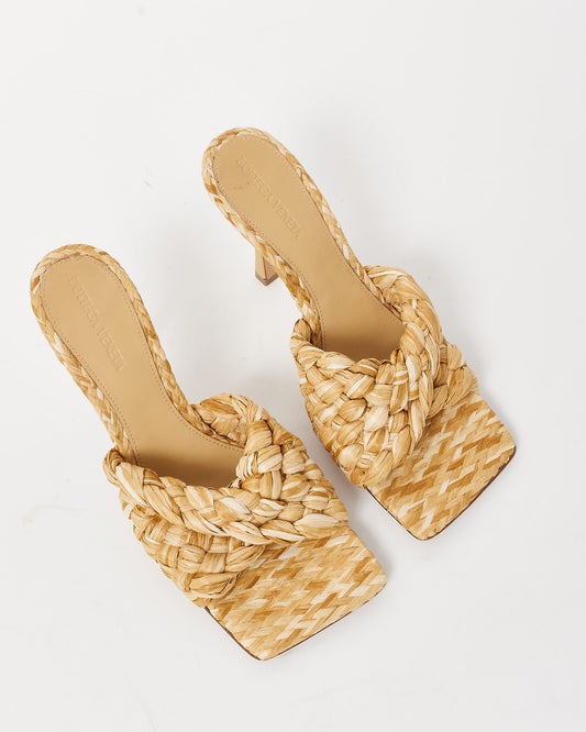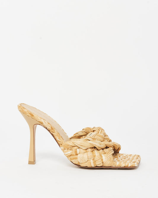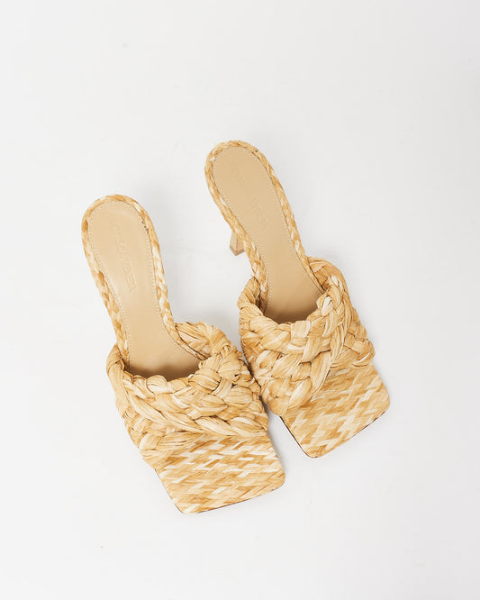 Beige Jumbo GG Logo Raffia and Leather Slingback Platform Sandals - 35.5