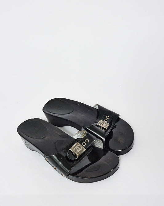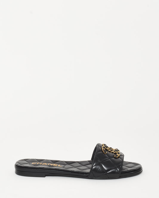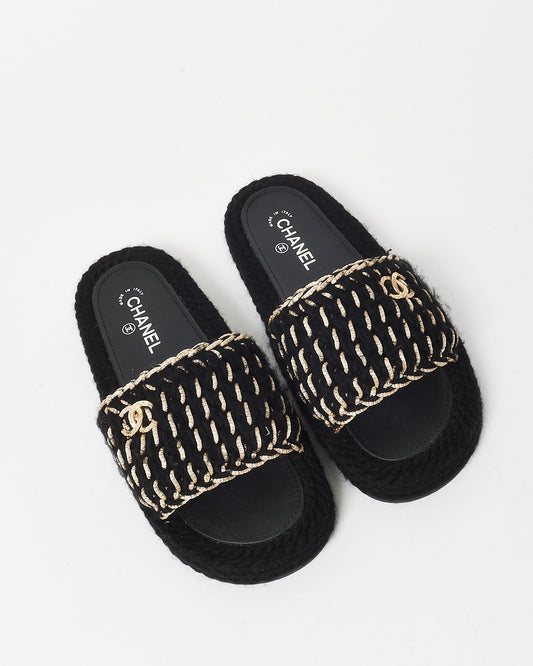 Black Quilted Leather Interlocking CC Logo Platform Sandals - 41
