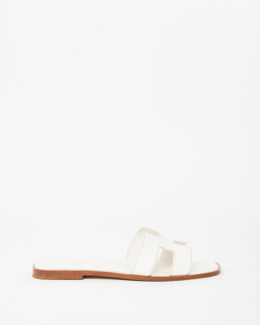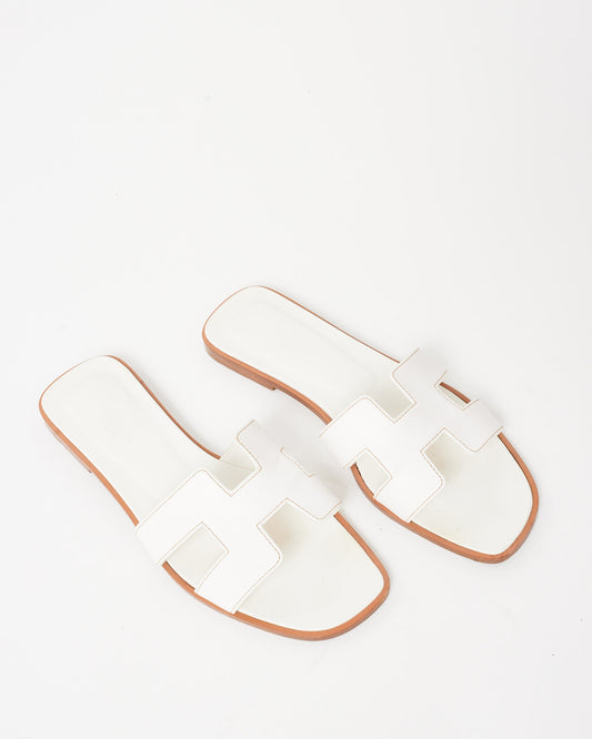 White Quilted Padded Leather Lido Flat Sandals - 36