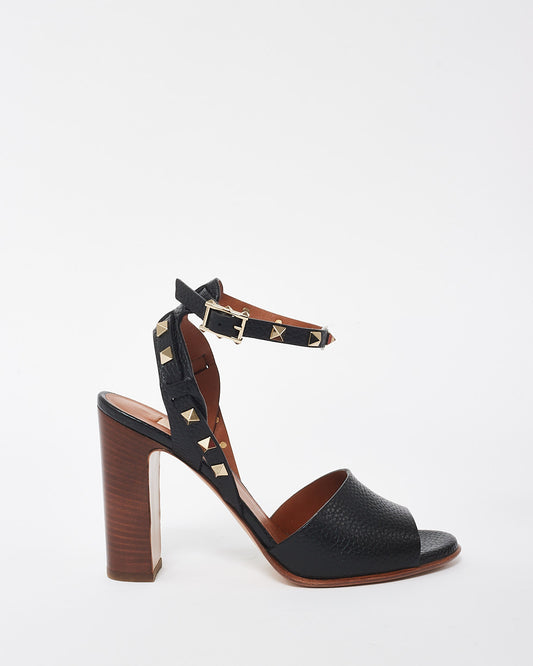 Black Leather Cagole Arena Studded Sandals - 37.5