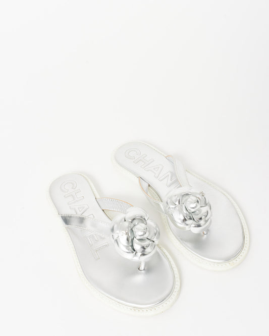 Black & White Logo Leather 22S Flip Flop Sandals - 35