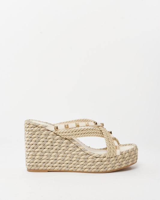 Beige Leather and Suede Decodeme Studded 120mm Platform Sandals - 37