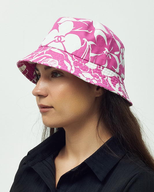Bob en coton rose et blanc à logo CC floral - Taille L