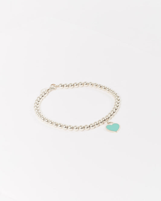 Tiffany & Co Bracelet à perles fines avec pendentif cœur en argent sterling