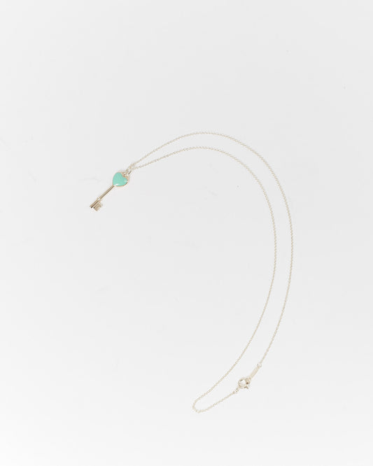 Tiffany & Co. Pendentif clé en forme de cœur en argent sterling et émail bleu