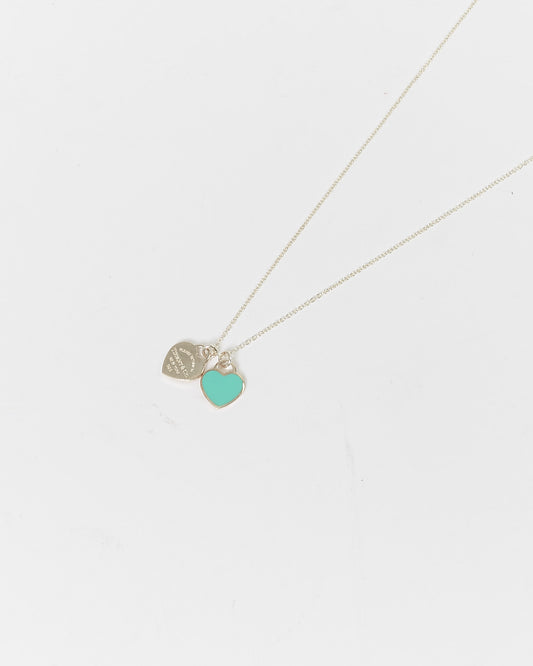Tiffany & Co. Collier pendentif double étiquette cœur en argent sterling