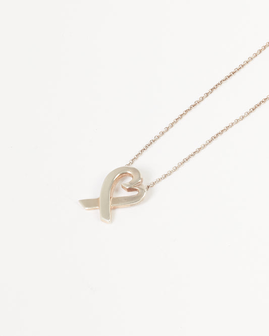 Tiffany & Co. Collier en argent sterling avec perles Elsa Peretti et cœur ouvert
