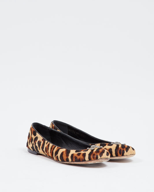 Ballerines à imprimé guépard et tête de mort en poils de poney - 38,5